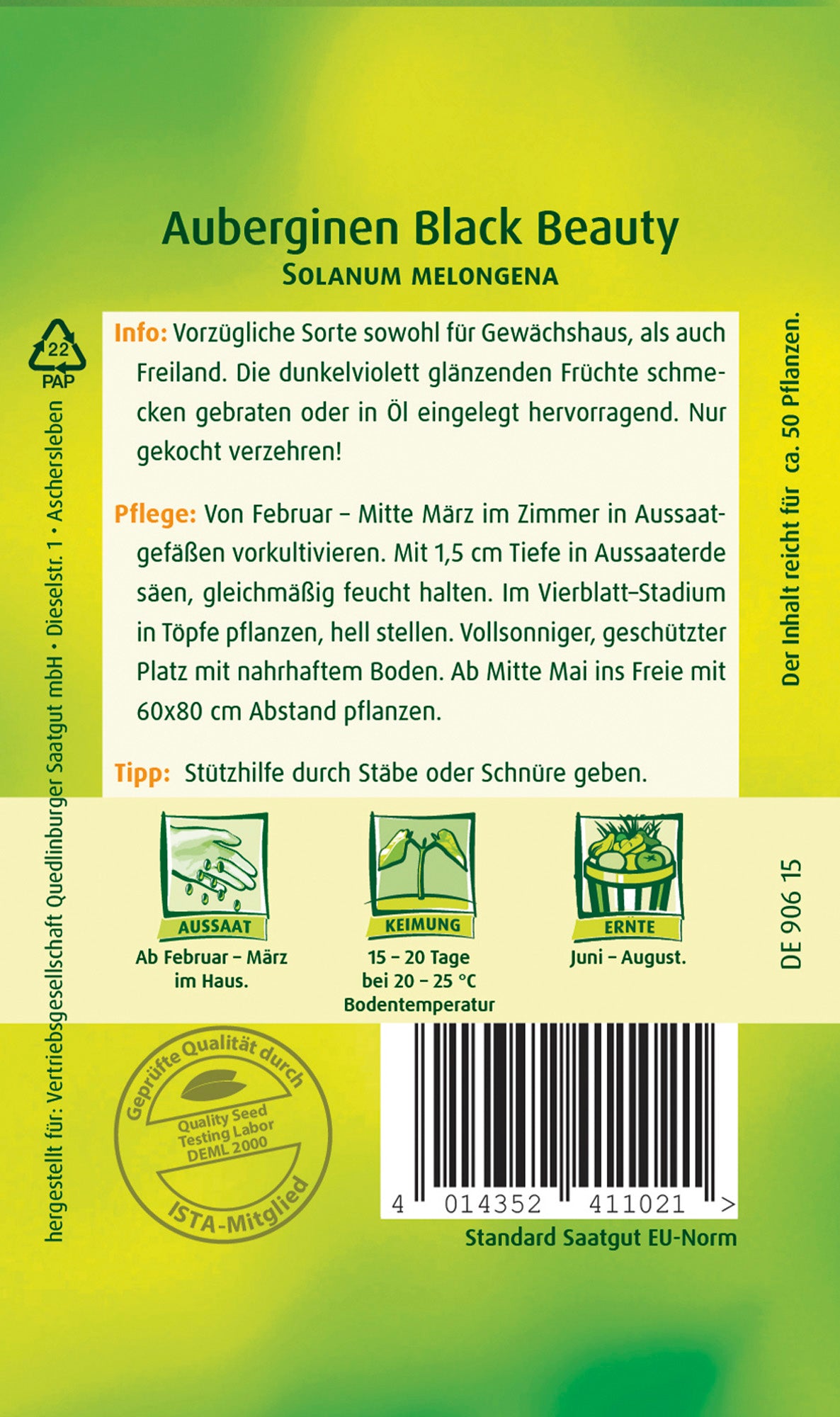 Pflege: Von Februar – Mitte März im Zimmer in Aussaatgefäßen vorkultivieren. Mit 1,5 cm Tiefe in Aussaaterde säen, gleichmäßig feucht halten. Im Vierblatt-Stadium in Töpfe pflanzen, hell stellen. Vollsonniger, geschützter Platz mit nahrhaftem Boden. Ab Mitte Mai ins Freie mit 60 x 80 cm Abstand pflanzen.