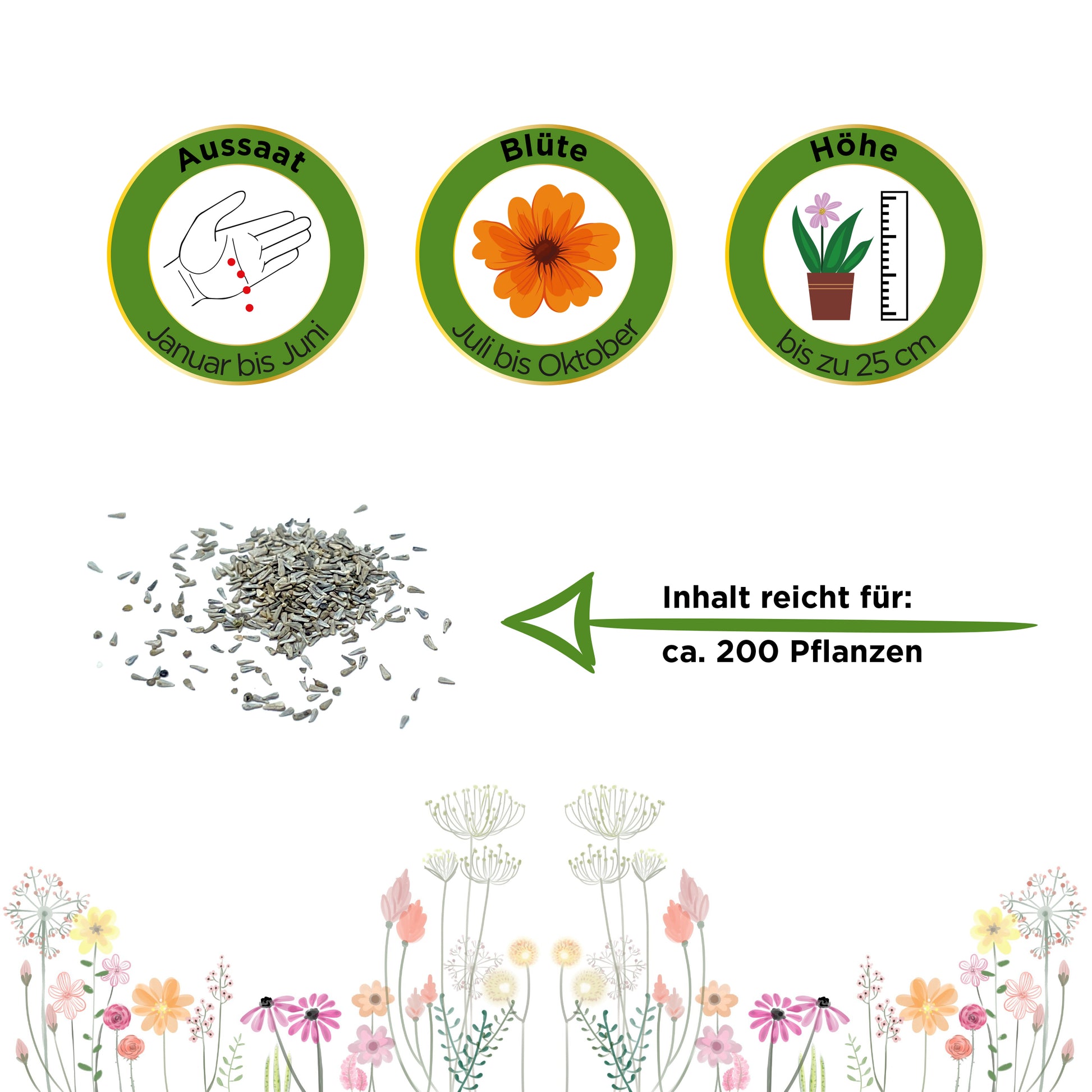 Aussaat: Aussaat von Januar bis März im Haus oder von Mai bis Juni direkt ins Freiland. Dünn mit Erde bedecken, leicht andrücken und feucht halten.