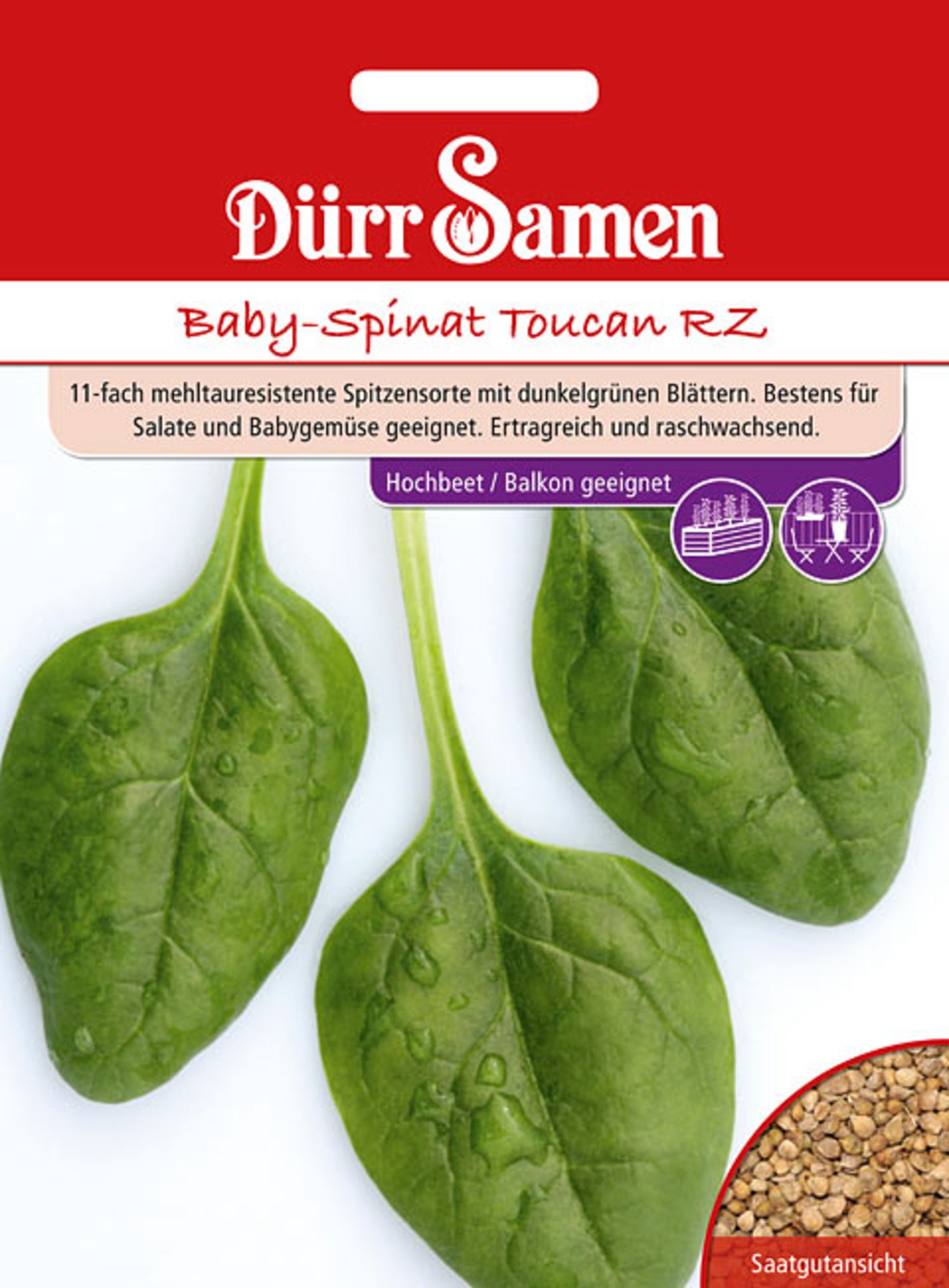 Info: Toucan RZ ist eine 11-fach mehltauresistente Spitzensorte mit dunkelgrünen Blättern. Bestens für Salate und Babygemüse geeignet. Ertragreich, raschwachsend, spätschießend und für alle Anbauzeiten.