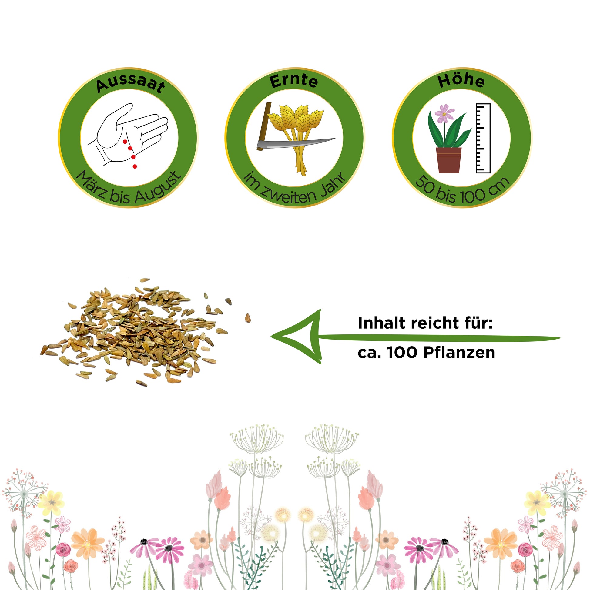 Keimung: Lichtkeimer! Keimt bei 5-18°C Bodentemperatur nach ca. 8-12 Tagen.