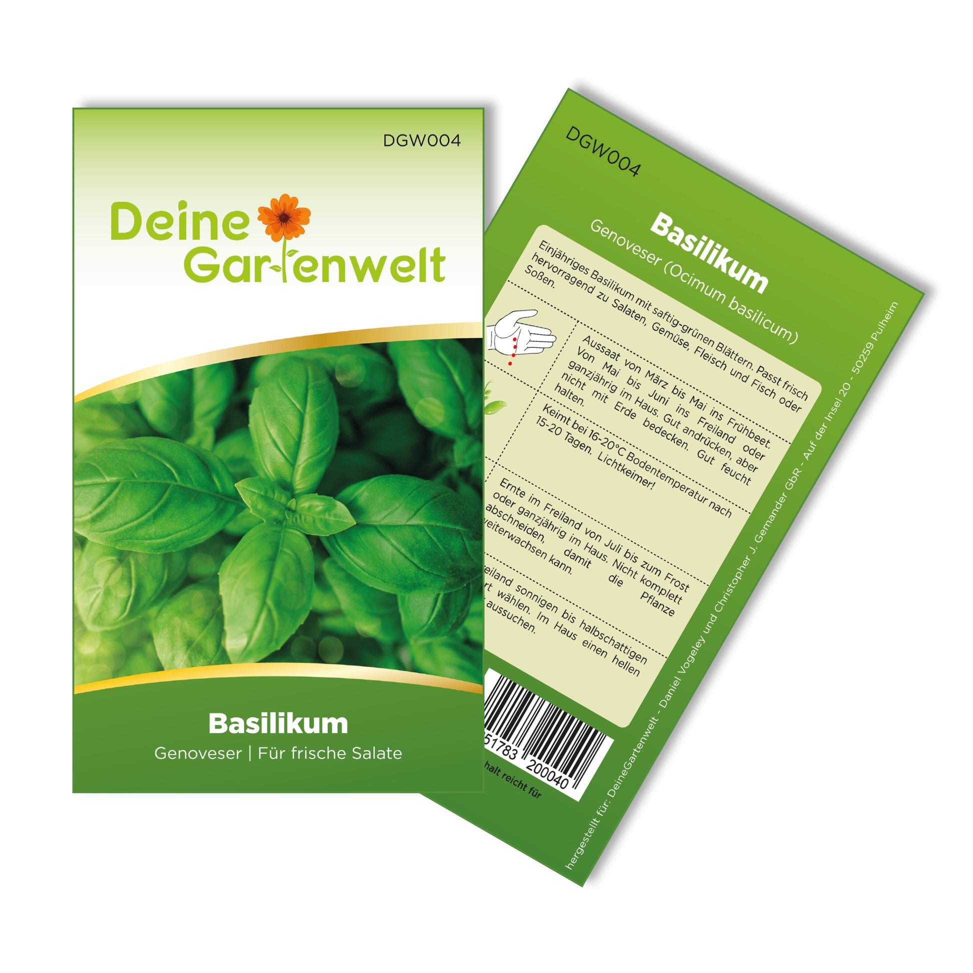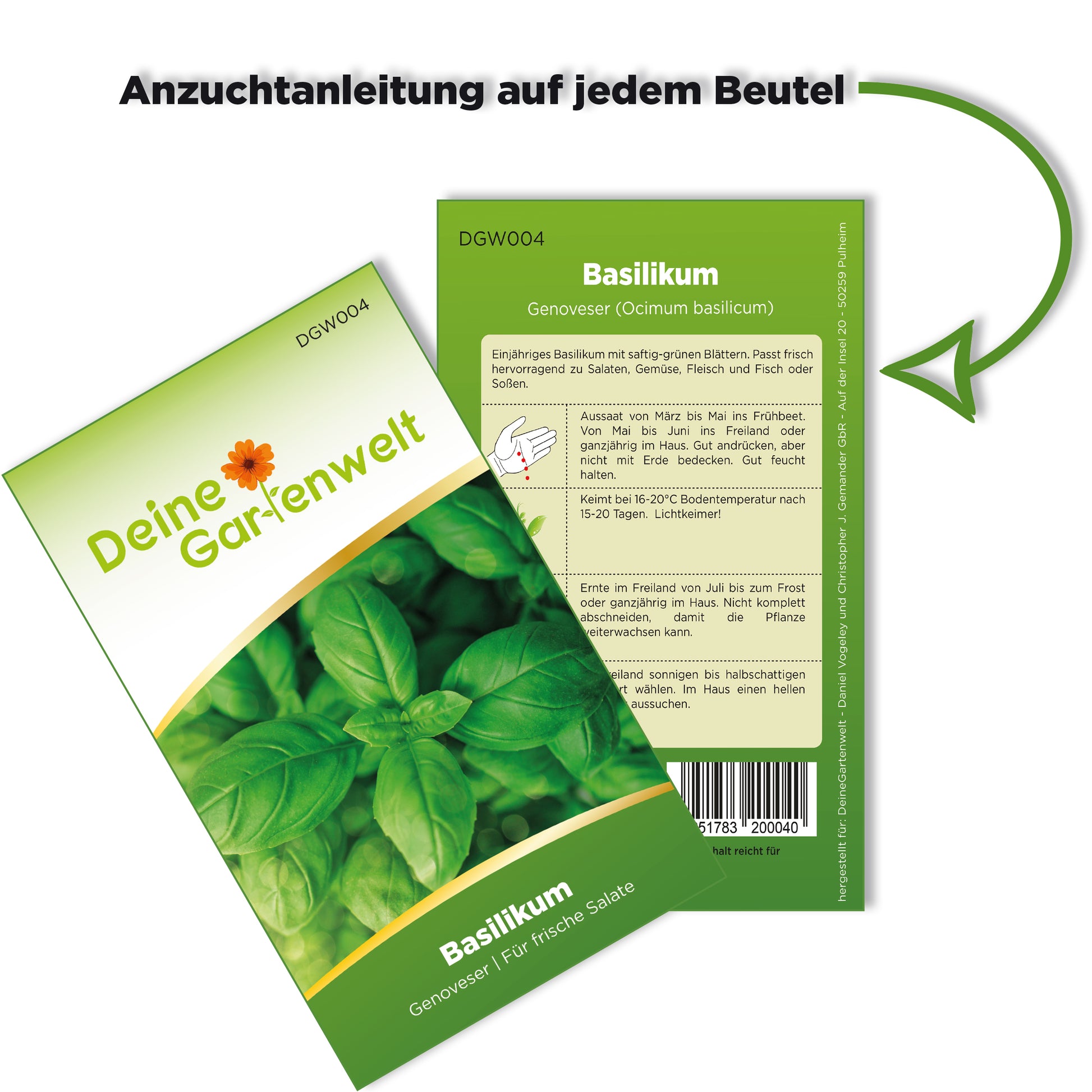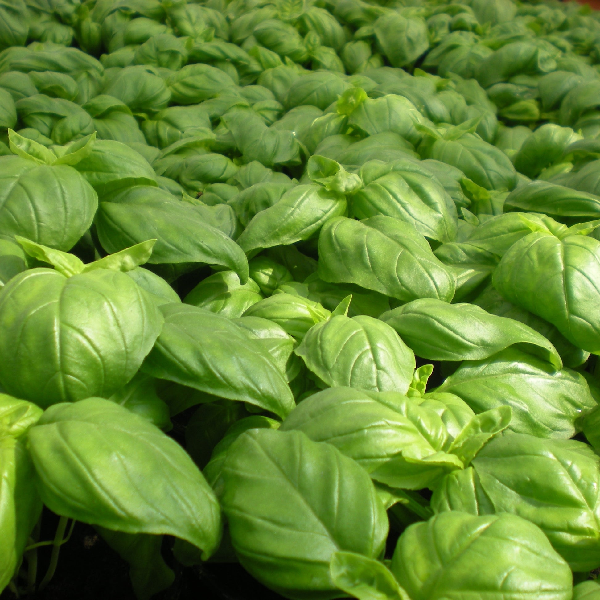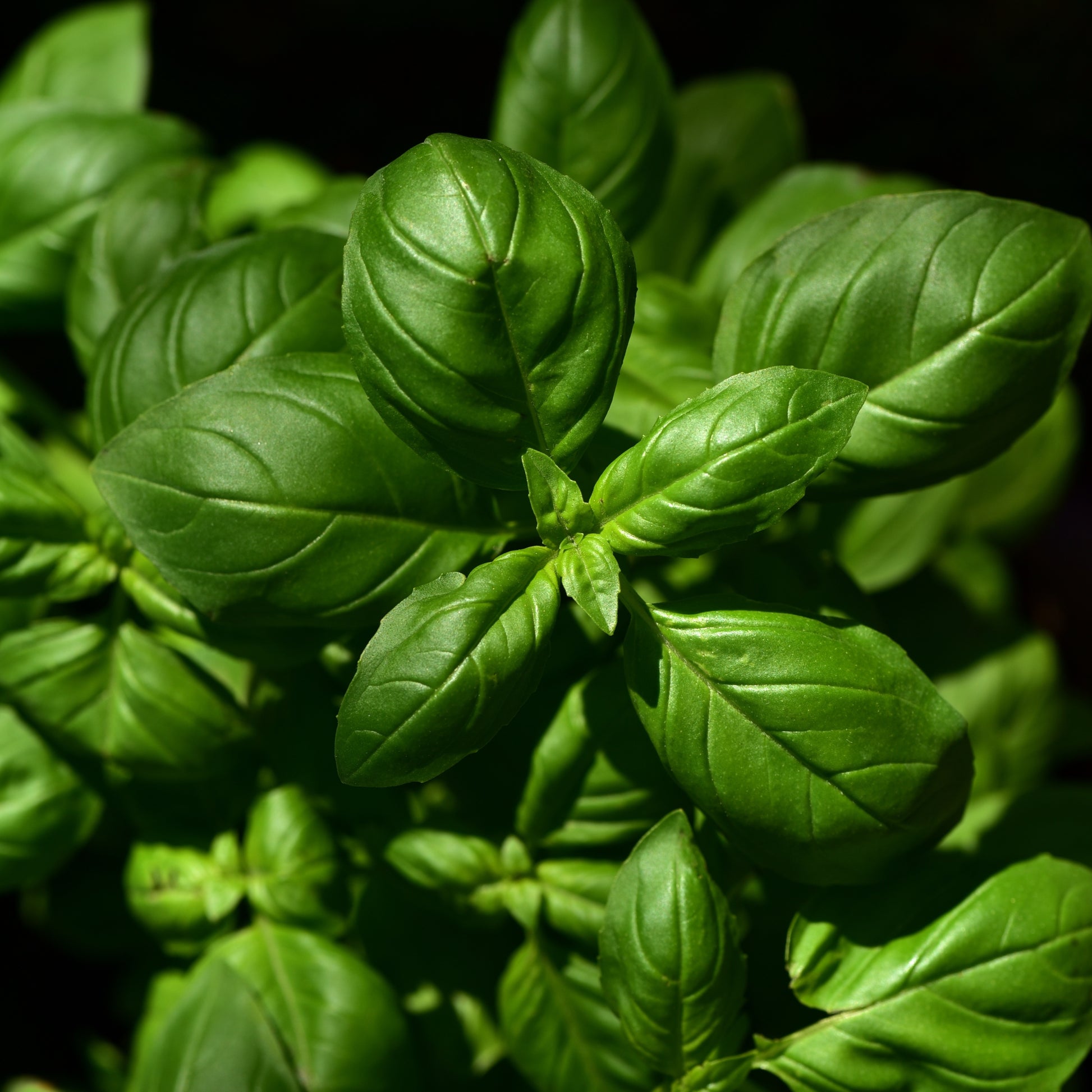 Einjähriges Basilikum mit saftig-grünen Blättern. Passt frisch hervorragend zu Salaten, Gemüse, Fleisch und Fisch oder Soßen.