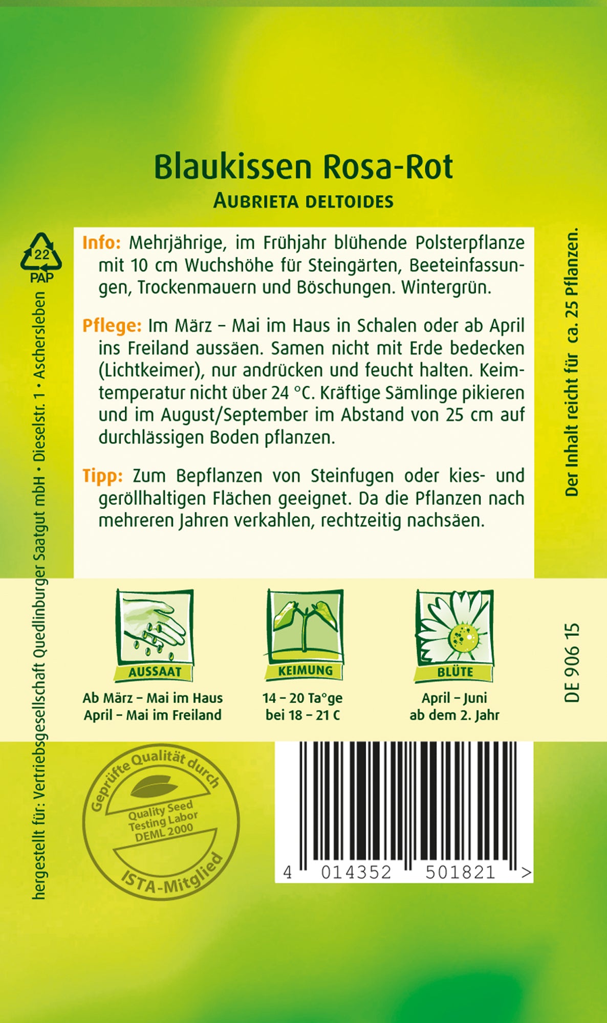 Mehrjährige, im Frühjahr blühende Polsterpflanze mit 10 cm Wuchshöhe für Steingärten, Beeteinfassungen, Trockenmauern und Böschungen. Wintergrün.