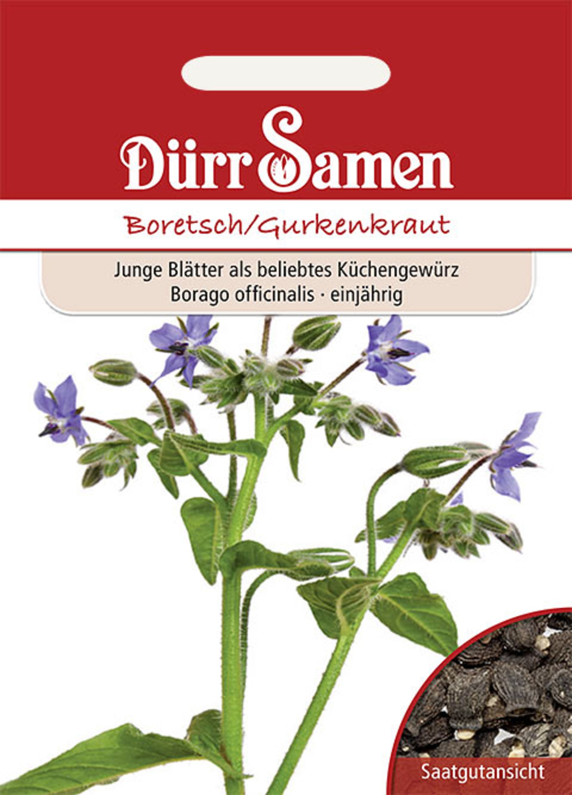 Info: Boretsch ist ein beliebtes Küchenkraut zum Würzen von Salat, Kartoffeln, gekochten Eiern, Tee und natürlich ideal zu Gurken.