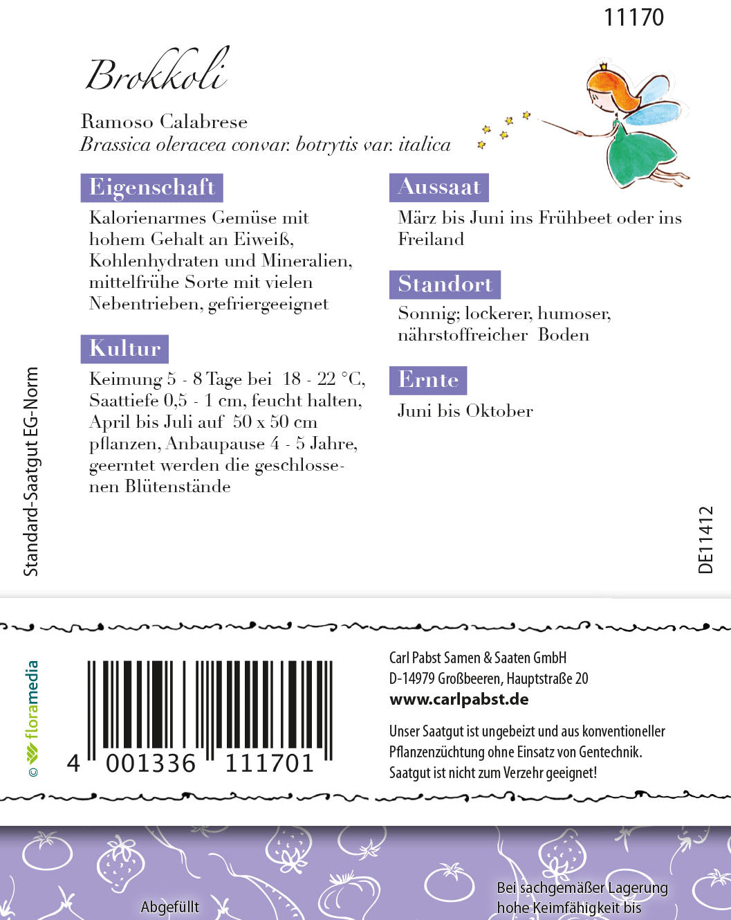 Italienische Traditionssorte des kaloriearmen, wohlschmeckenden Spargelkohls, mittelfrühe, gefriergeeignete Sorte mit starkem Haupttrieb und vielen Nebentrieben, die laufend bis in den Herbst hinein geerntet werden können.