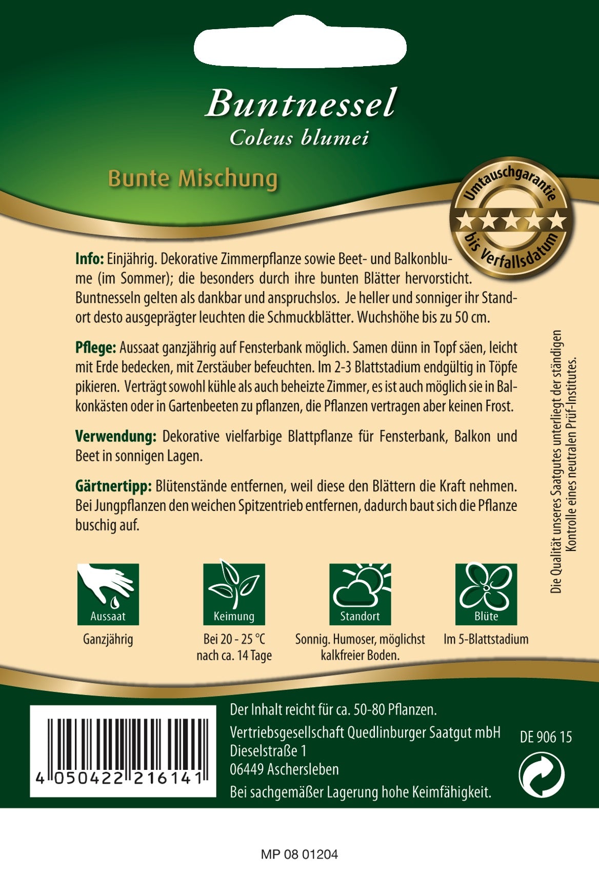 Verwendung: Dekorative vielfarbige Blattpflanze für Fensterbank, Balkon und Beet in sonnigen Lagen.