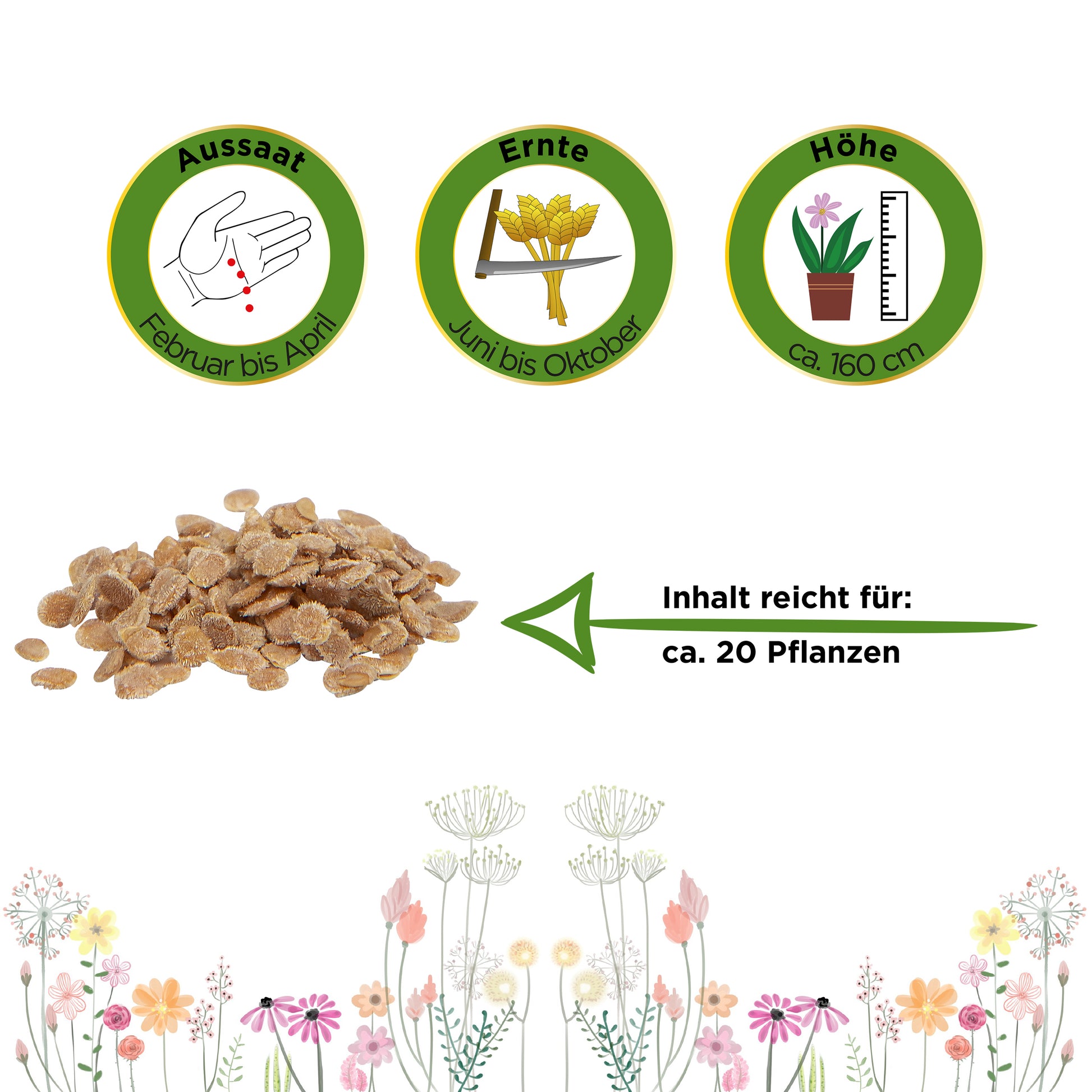 Aussaat: Aussaat von Mitte Februar bis Mitte April im Haus. 0,5 cm tief einpflanzen. Leicht andrücken, mit Erde bedecken und feucht halten.