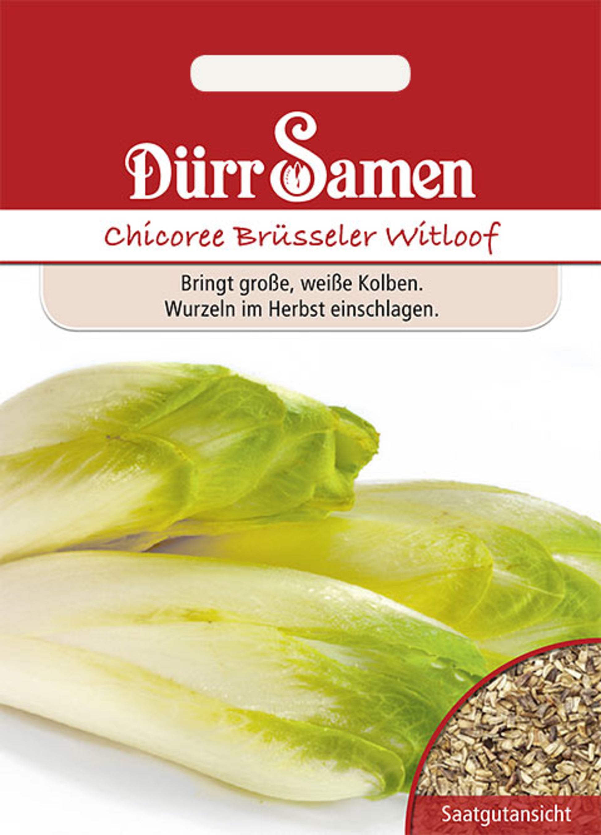 Info: Brüsseler Witloof bringt große, weiße Kolben. Wurzeln im Herbst einschlagen.