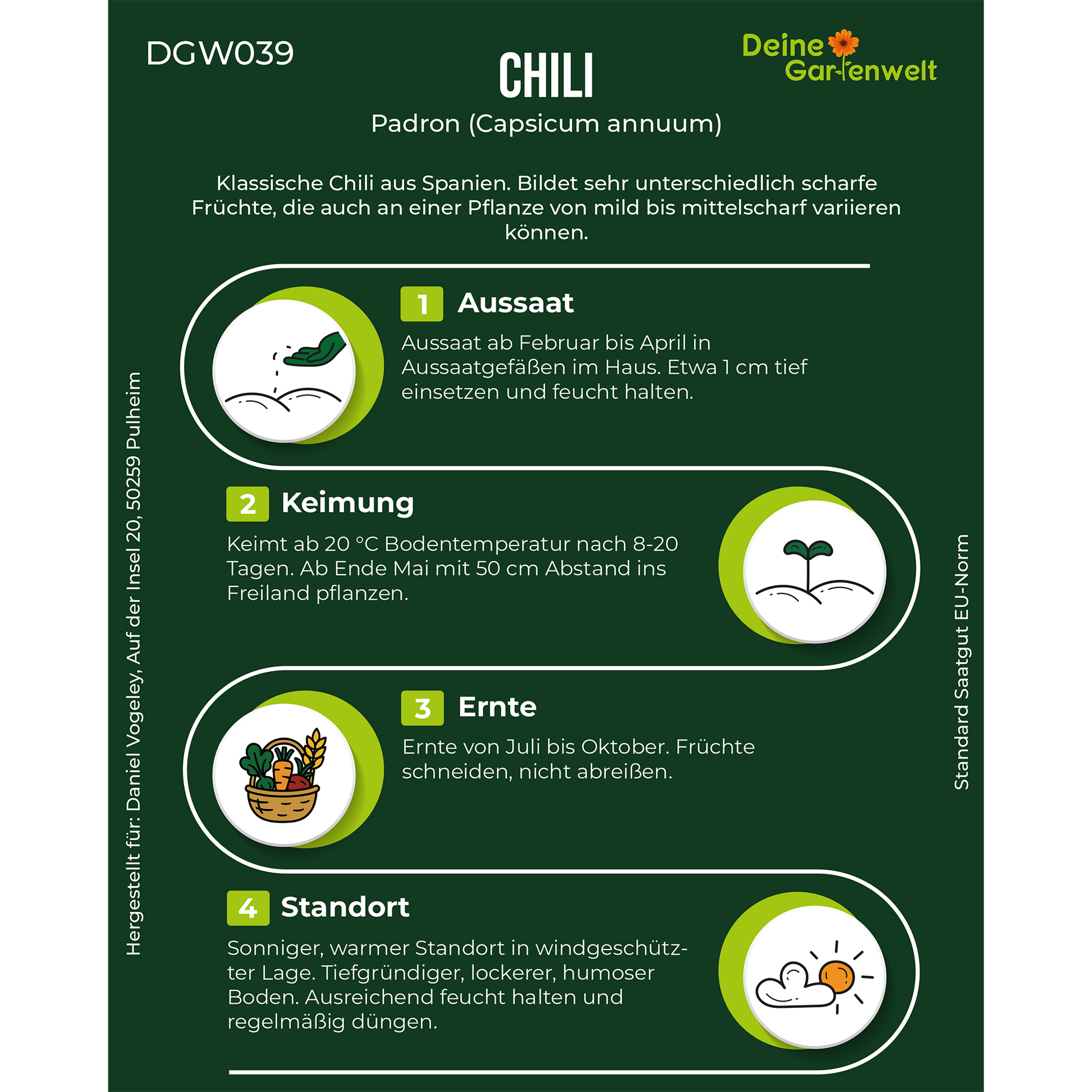 Klassische Chili aus Spanien. Bildet sehr unterschiedlich scharfe Früchte, die auch an einer Pflanze von mild bis mittelscharf variieren können.