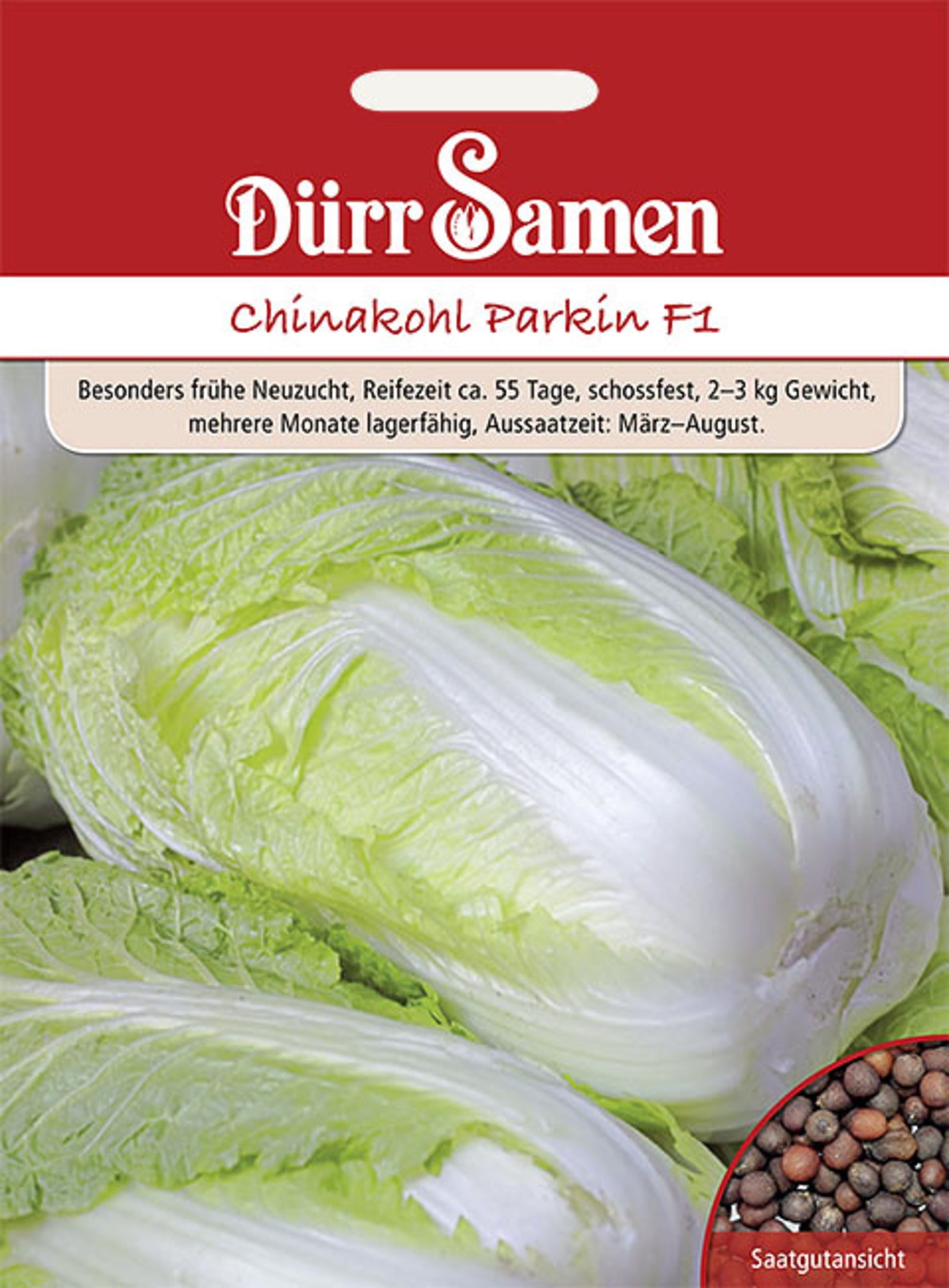 Info: Parkin F1 bildet kräftige, frischgrüne, mittellange 2–3 kg schwere Köpfe. Sehr schossfeste Sorte. Ideal auch zur Einlagerung.