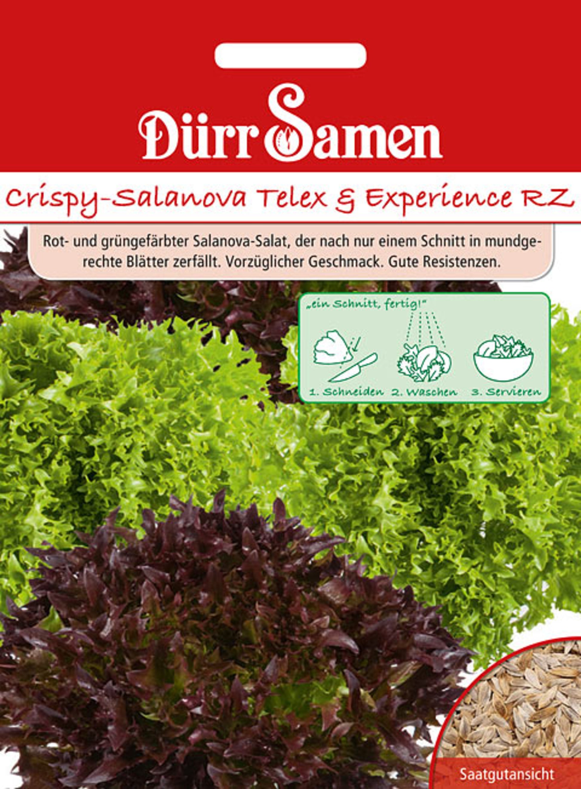 Info: Telex & Experience RZ sind rot- sowie grüngefärbte Salanova-Salate, die nach nur einem Schnitt in mundgerechte Blätter zerfallen. Sie haben einen vorzüglichen Geschmack und gute Resistenzen.