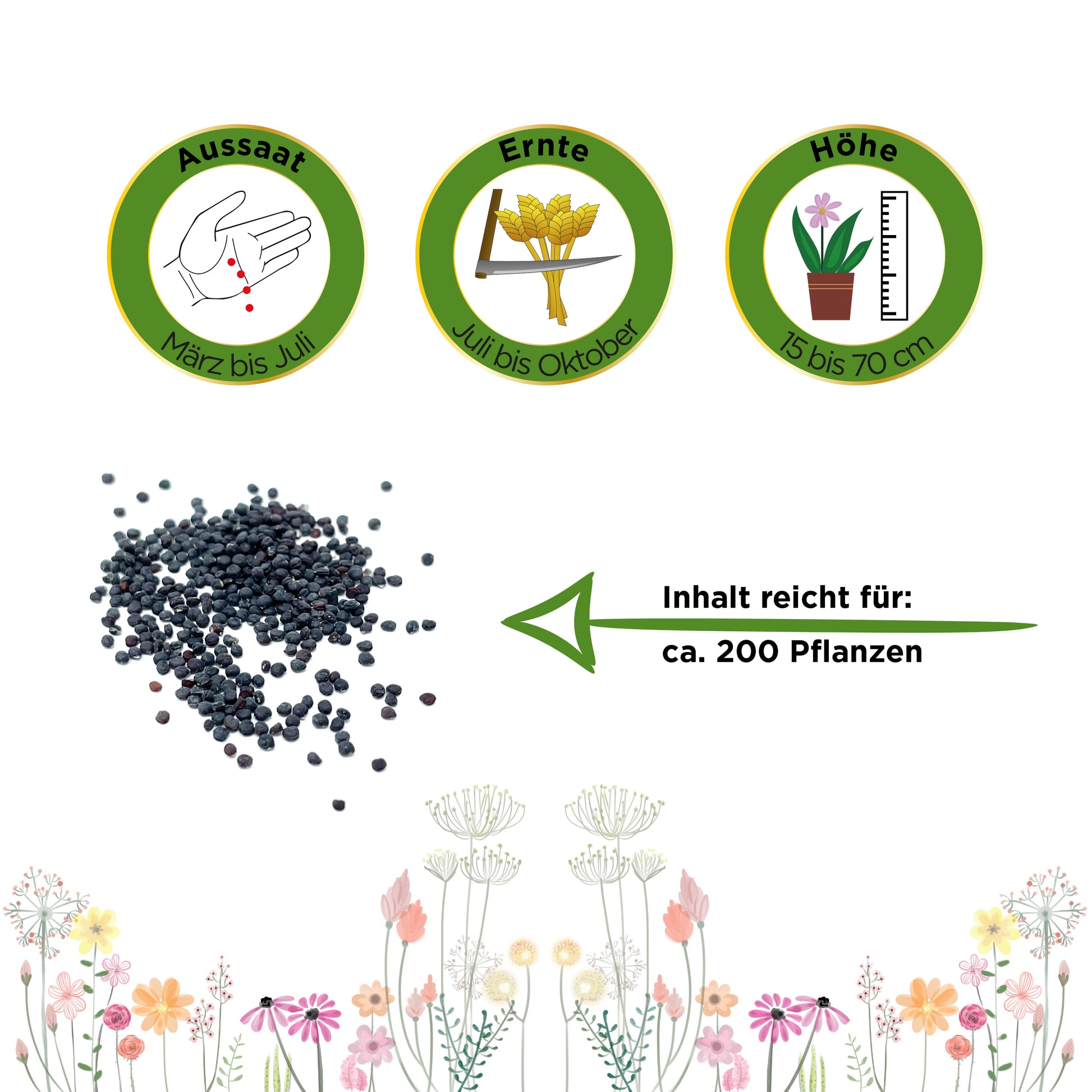 Aussaat: Aussaat von März bis Juli direkt ins Freiland mit 20 cm Abstand. 1-3 cm tief einsetzen.