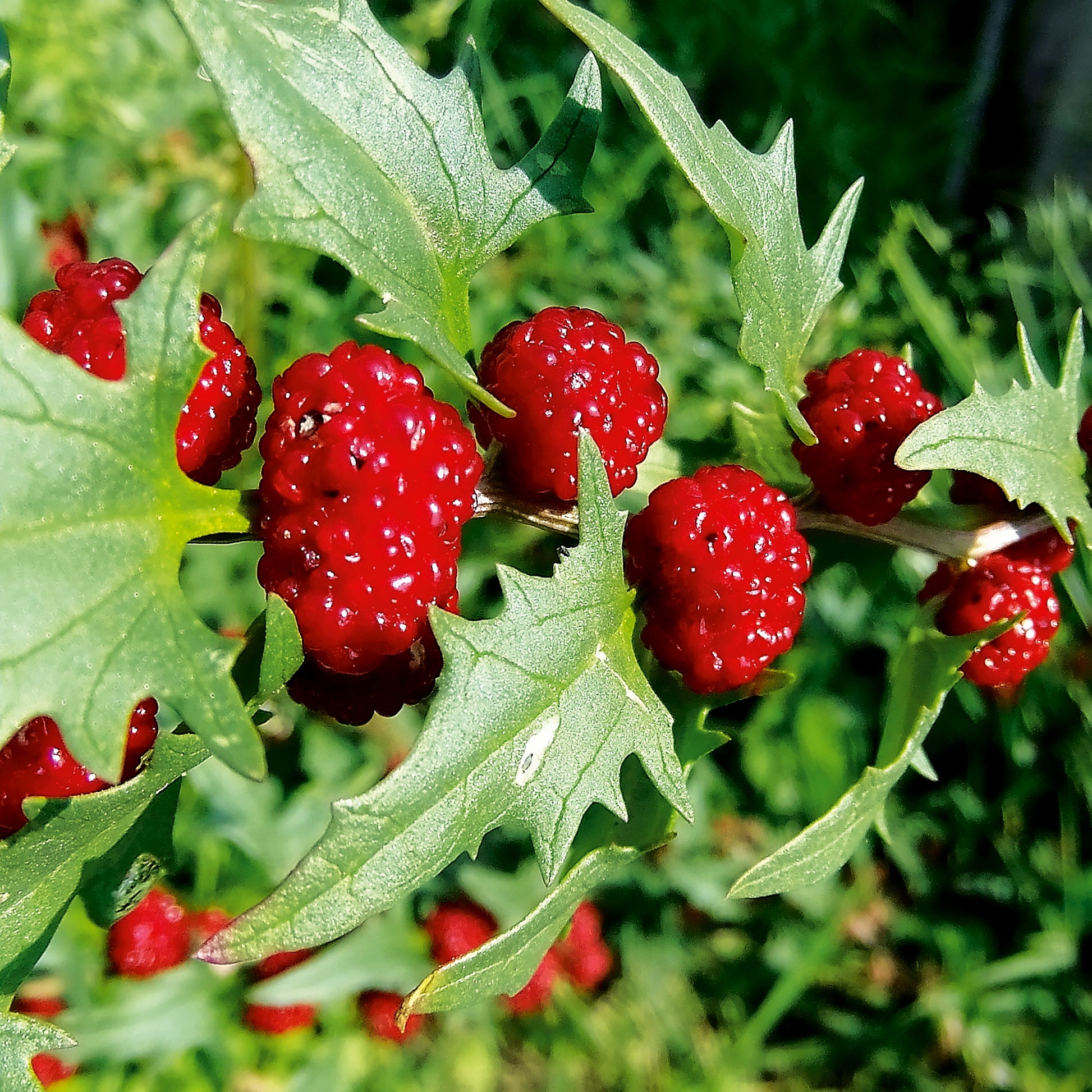 Alte Gemüsesorte, die auch in Balkonkästen gedeiht. Junge Blätter lassen sich wie Spinat verwenden. Die rote Früchte ähneln Erdbeeren und schmecken leicht süßlich.