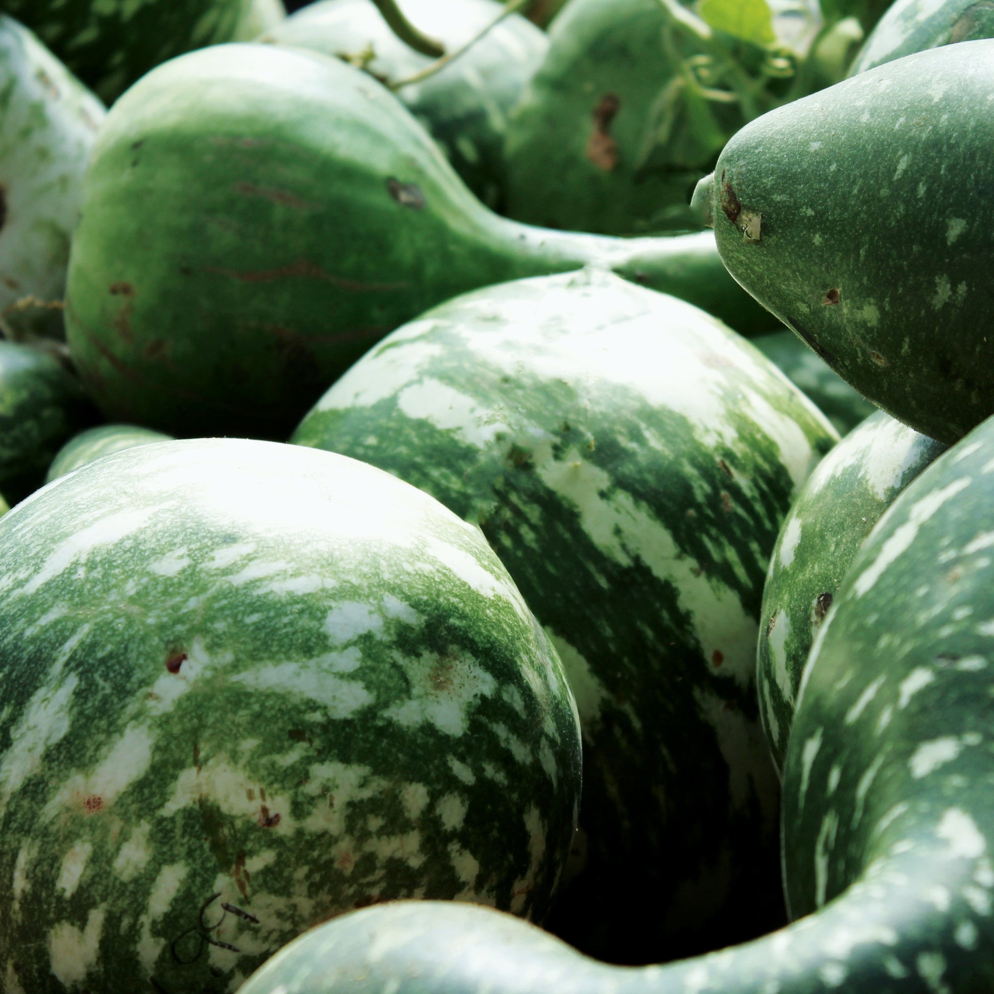 Einjährige Mischung von Flaschenkürbissen in mannigfaltigen Formen. Ideal zum Basteln oder als Dekoration.