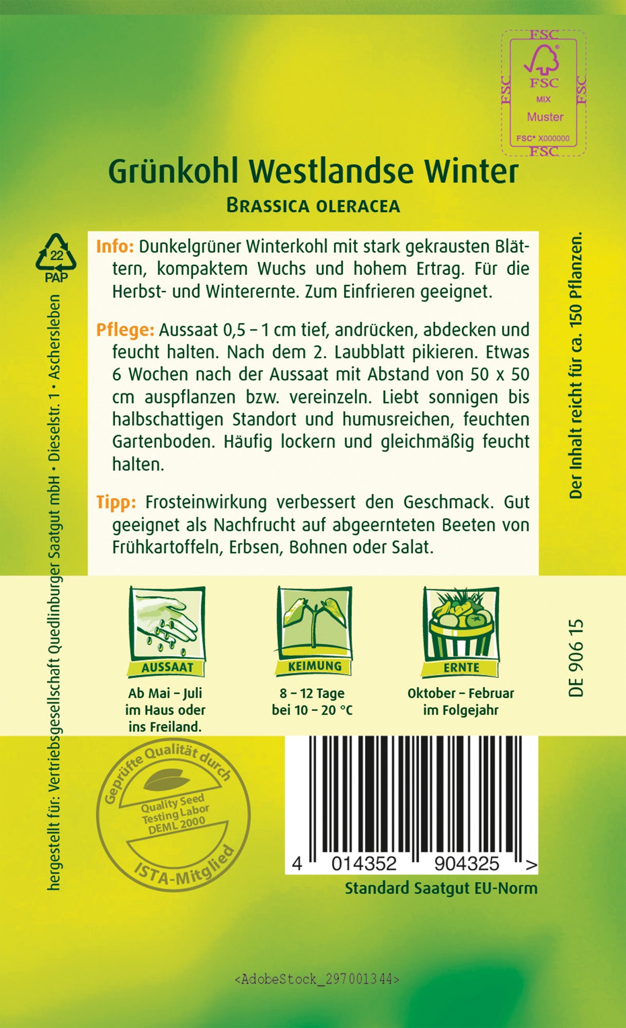 Dunkelgrüner Winterkohl mit stark gekrausten Blättern, kompakten Wuchs und hohem Ertrag. Für die Herbst- und Winterernte. Zum Einfrieren geeignet.