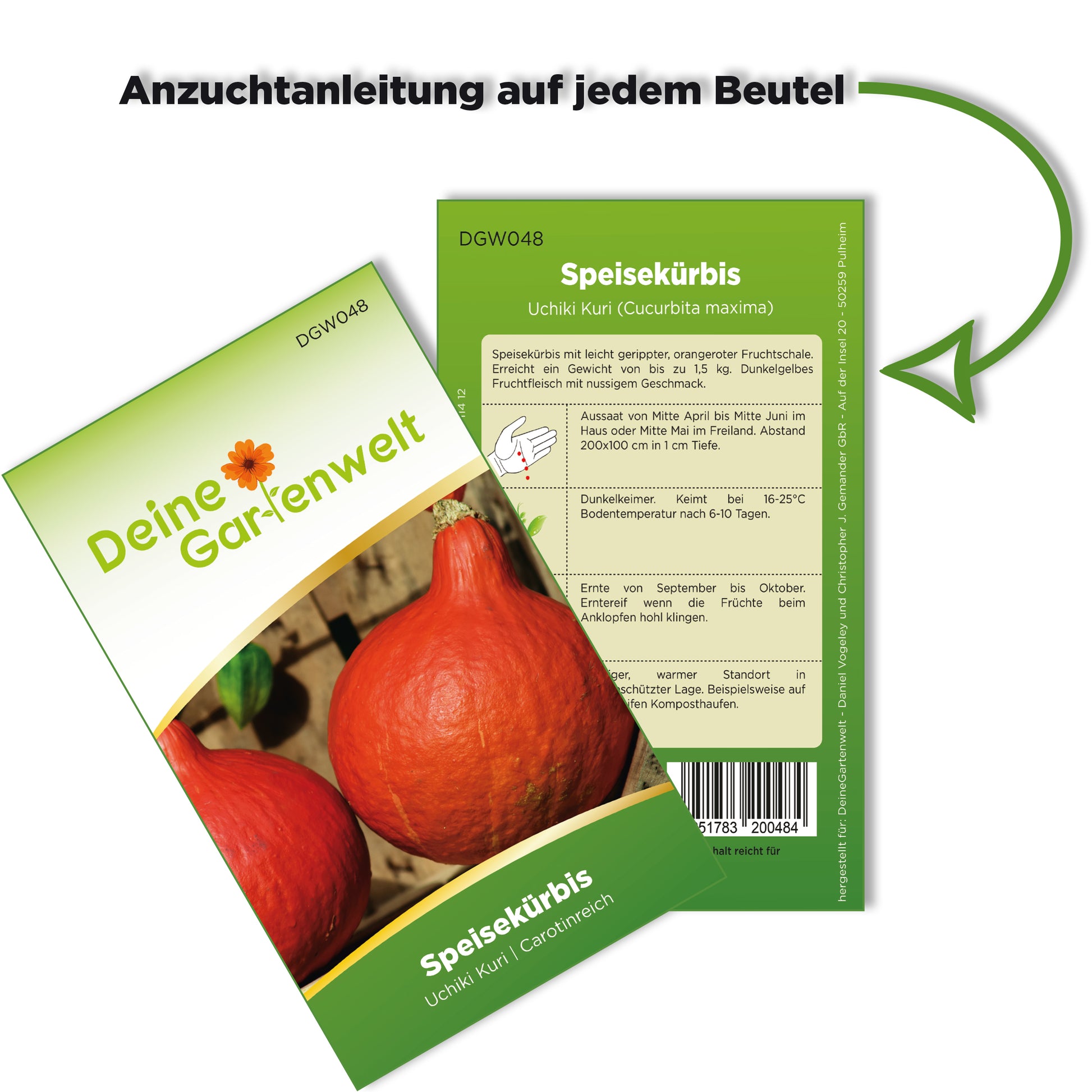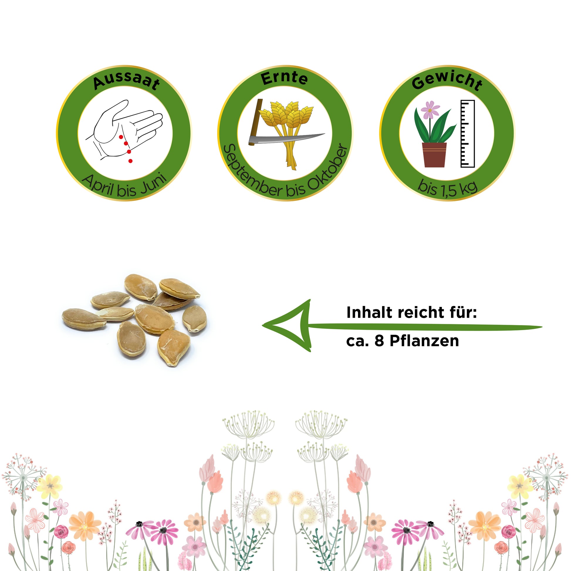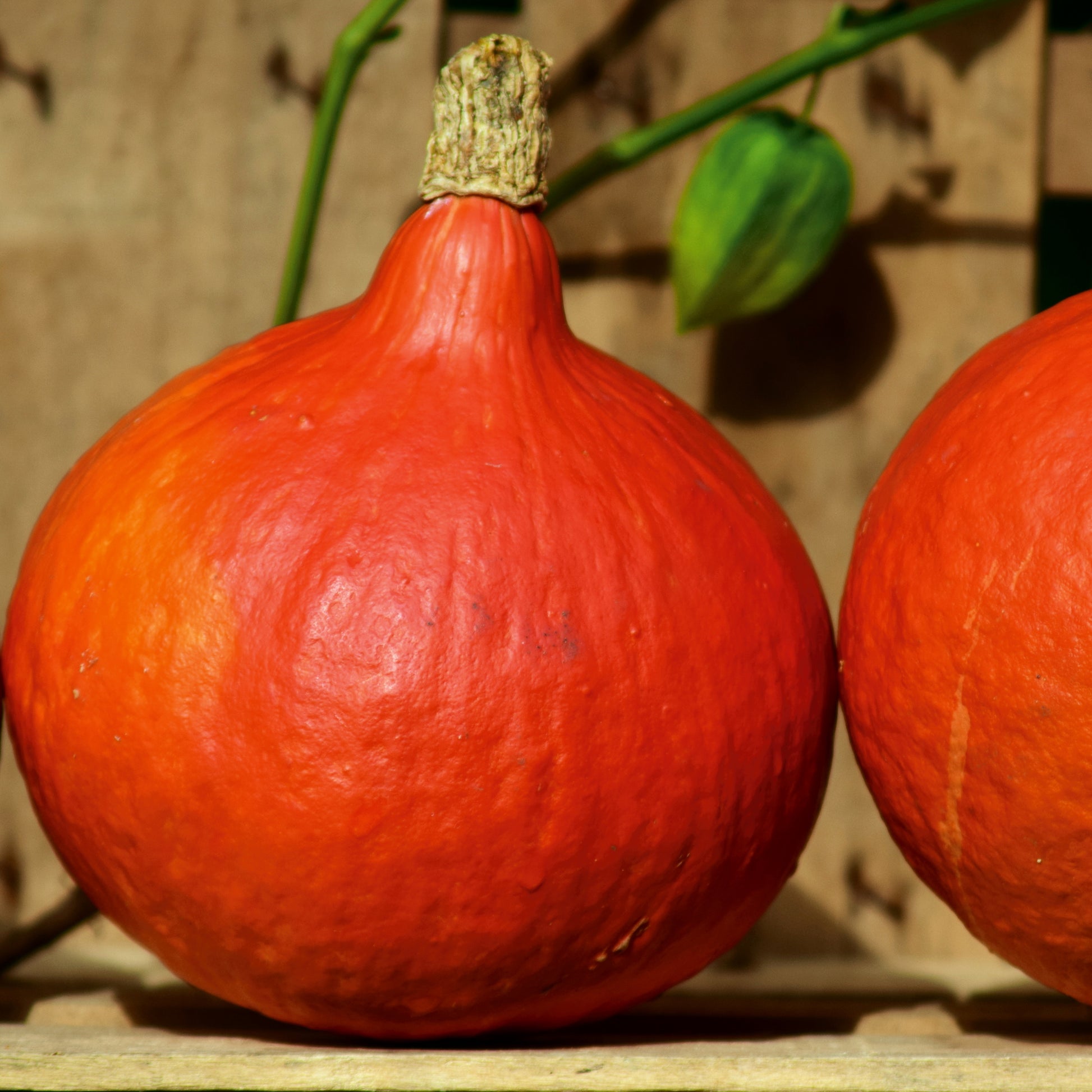 Speisekürbis mit leicht gerippter, orangeroter Fruchtschale. Erreicht ein Gewicht von bis zu 1,5 kg. Dunkelgelbes Fruchtfleisch mit nussigem Geschmack.