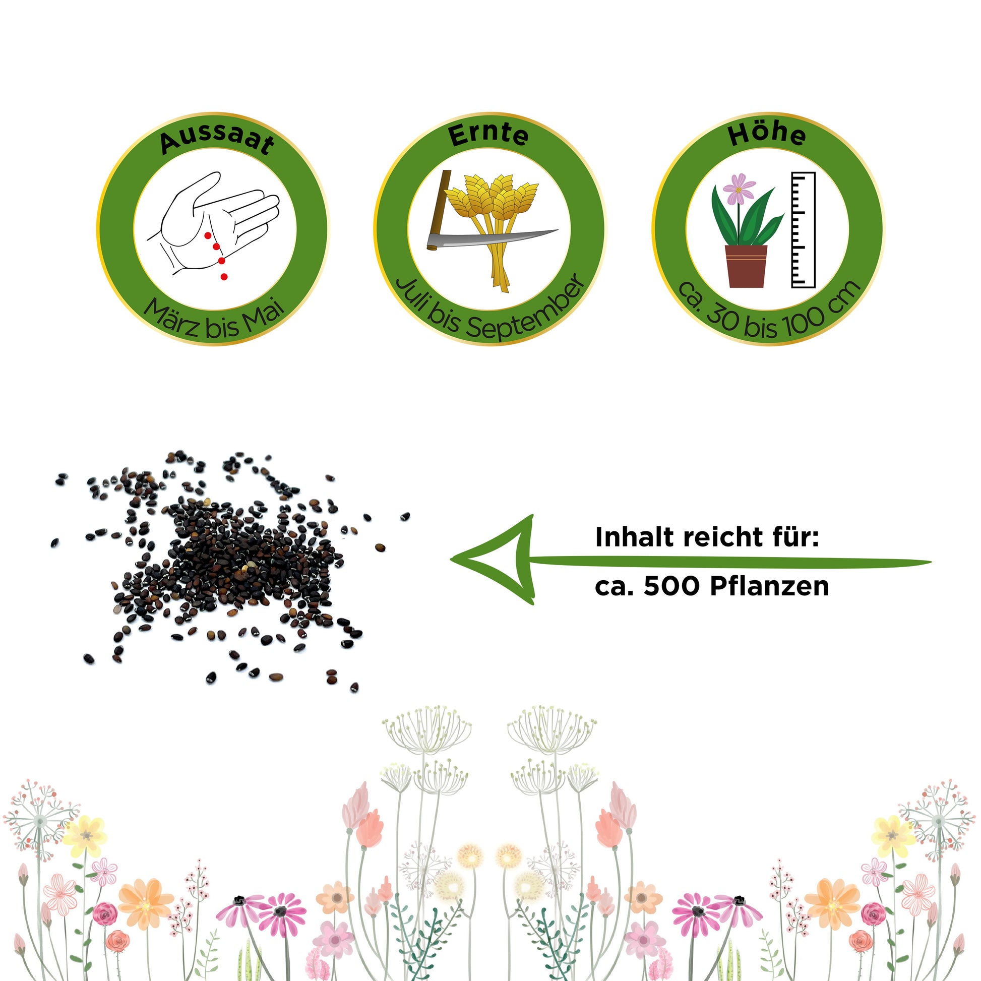 Aussaat: Aussaat von März bis April im Haus oder von April bis Mai im Freiland. Ca. 0,5 cm tief mit einem Abstand von 30 cm.