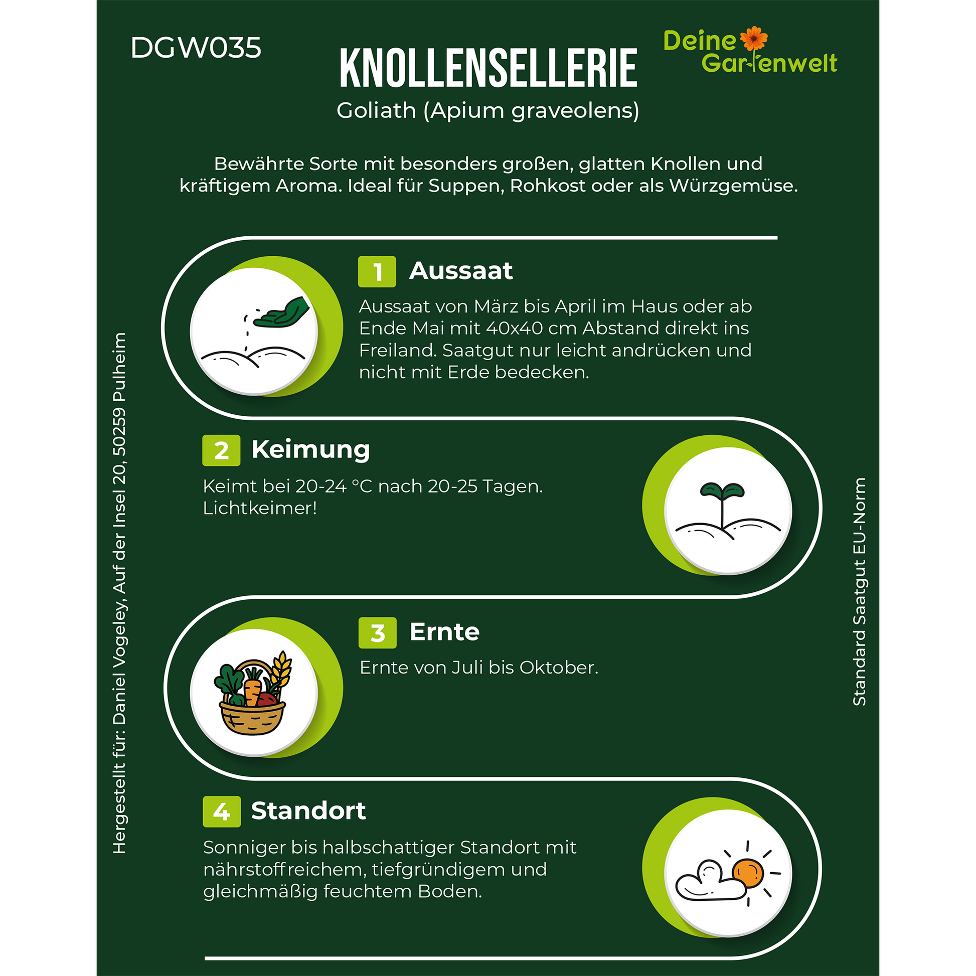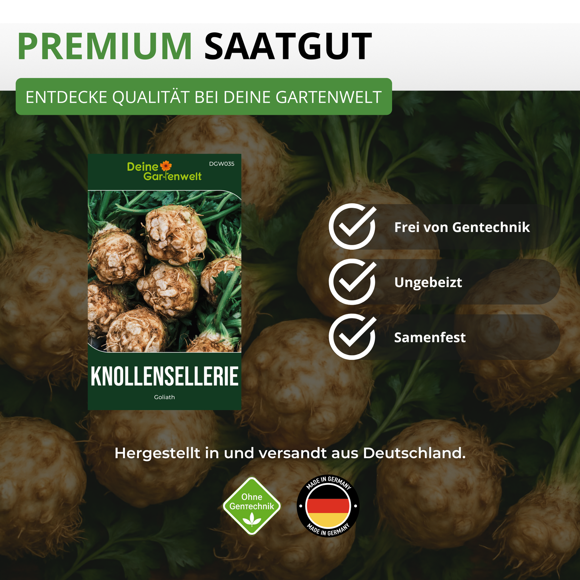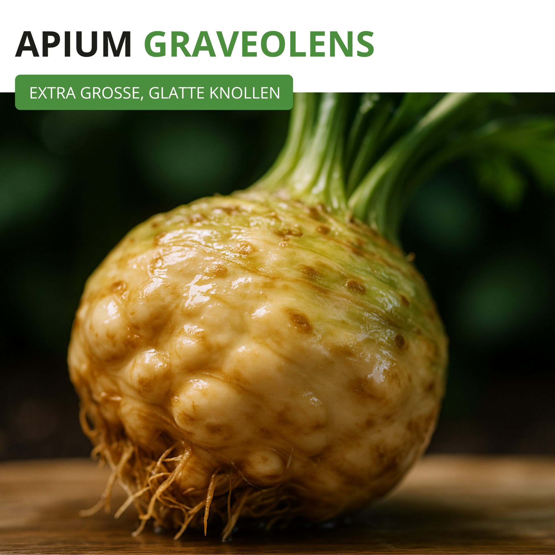 Bewährte Sorte mit besonders großen, glatten Knollen und kräftigem Aroma. Ideal für Suppen, Rohkost oder als Würzgemüse.