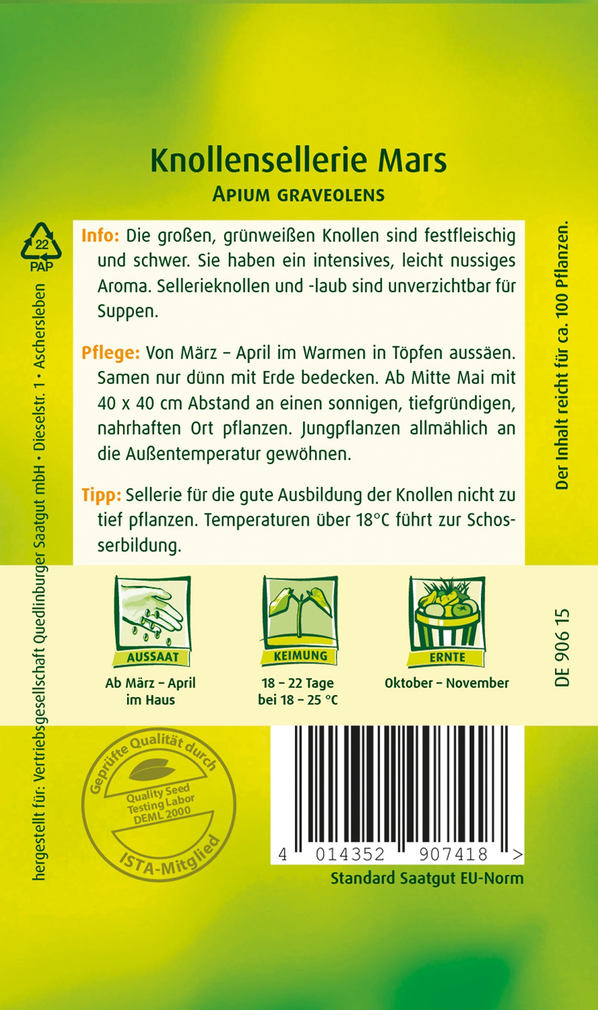 - Tipp:Sellerie für die gute Ausbildung der Knollen nicht zu tief pflanzen. Temperaturen über 18°C führt zur Schosserbildung