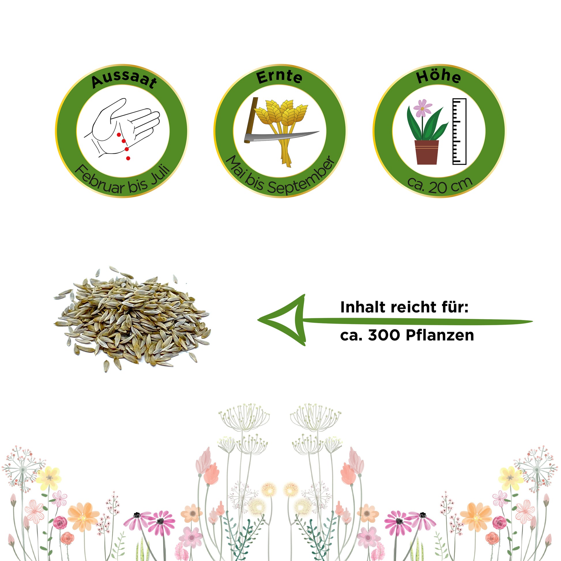 Aussaat: Aussaat von Februar bis April im Haus oder von April bis Mitte Juli direkt ins Freiland. 0,5 cm tief mit 25x25 cm Abstand einsetzen, mit Erde bedecken und feucht halten.