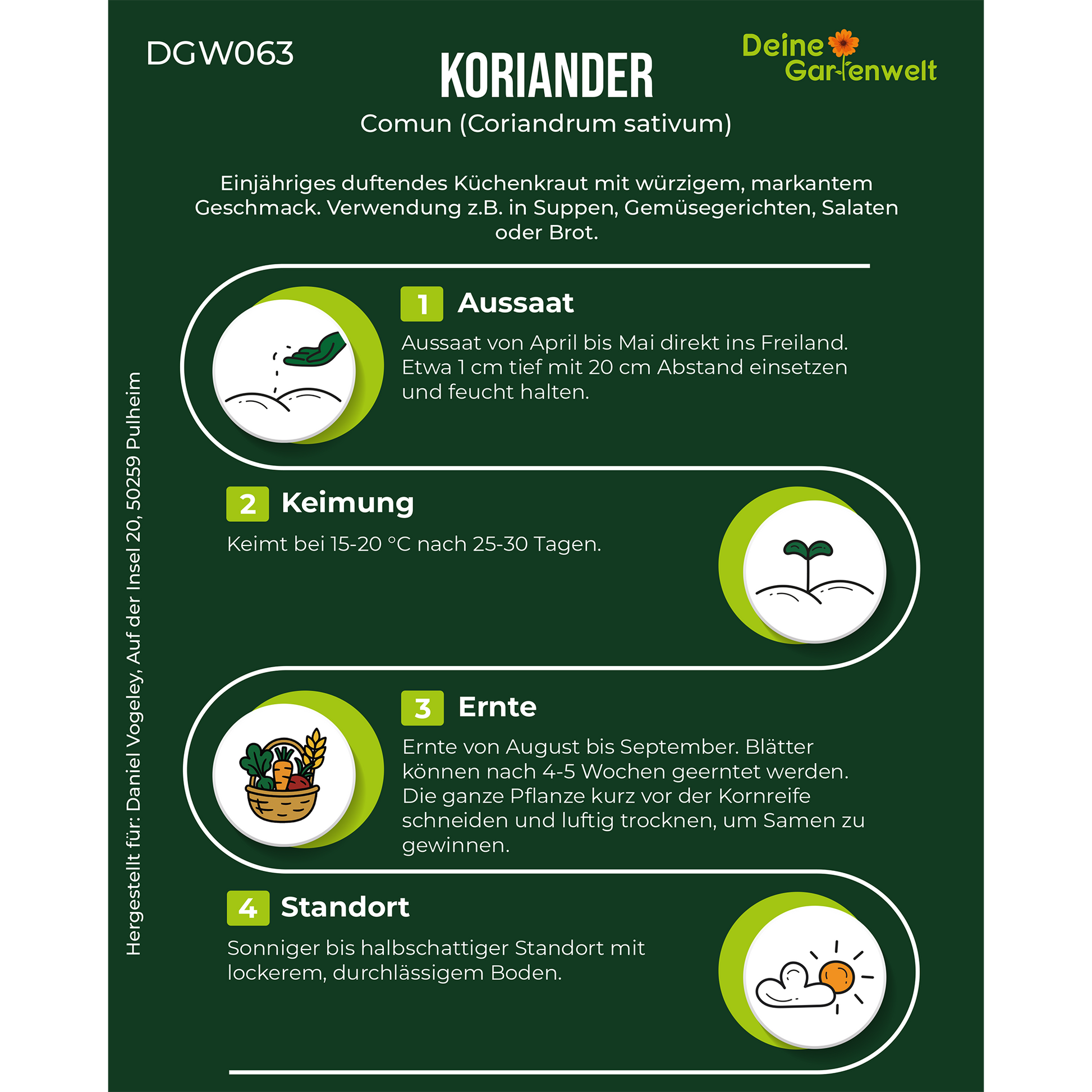 Einjähriges duftendes Küchenkraut mit würzigem, markantem Geschmack. Verwendung z.B. in Suppen, Gemüsegerichten, Salaten oder Brot.