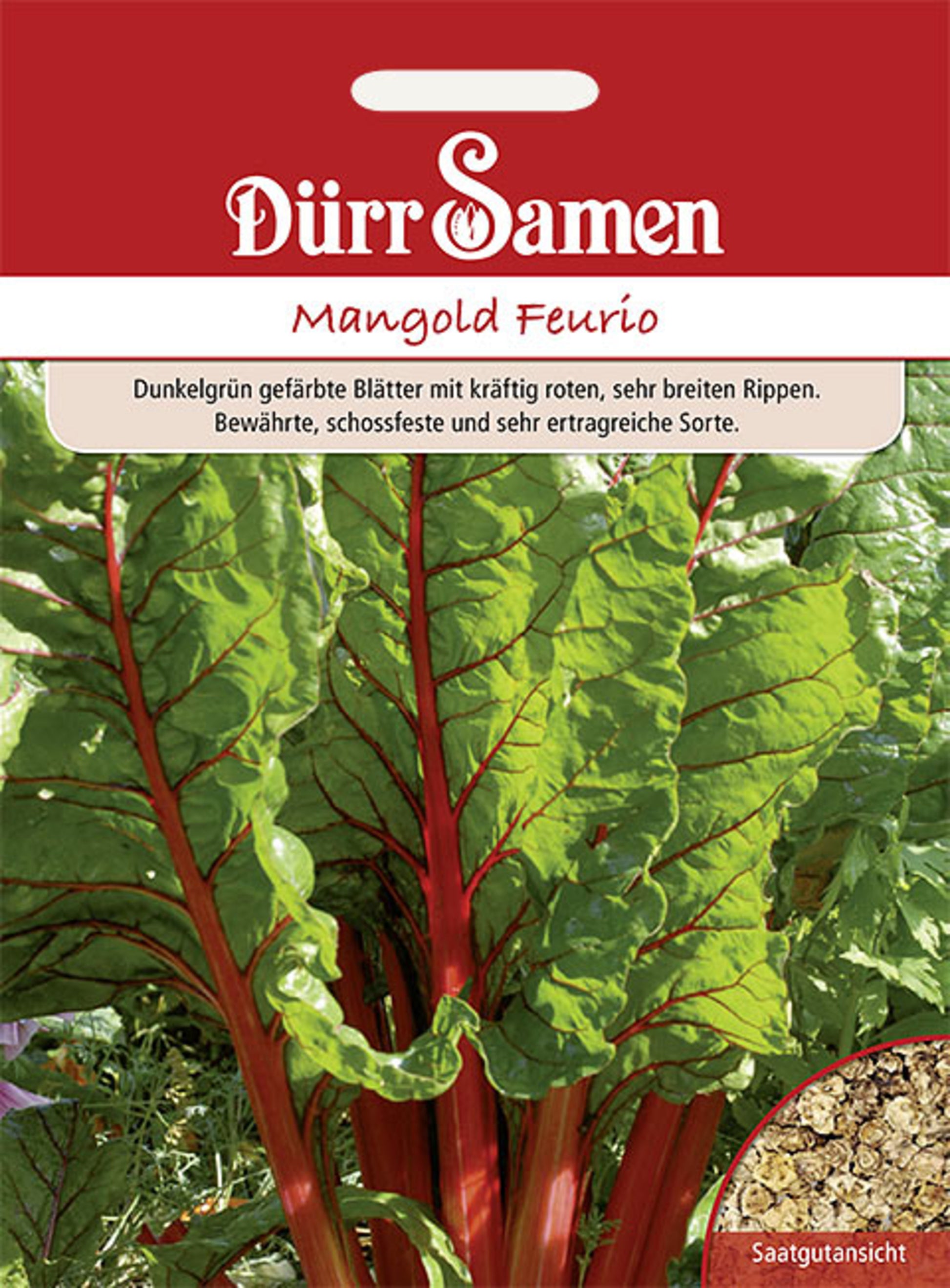 Info: Diese bewährte Sorte ist schossfest und sehr ertragreich. Seine Blätter sind dunkelgrün gefärbt und haben kräftig rote und sehr breite Rippen.