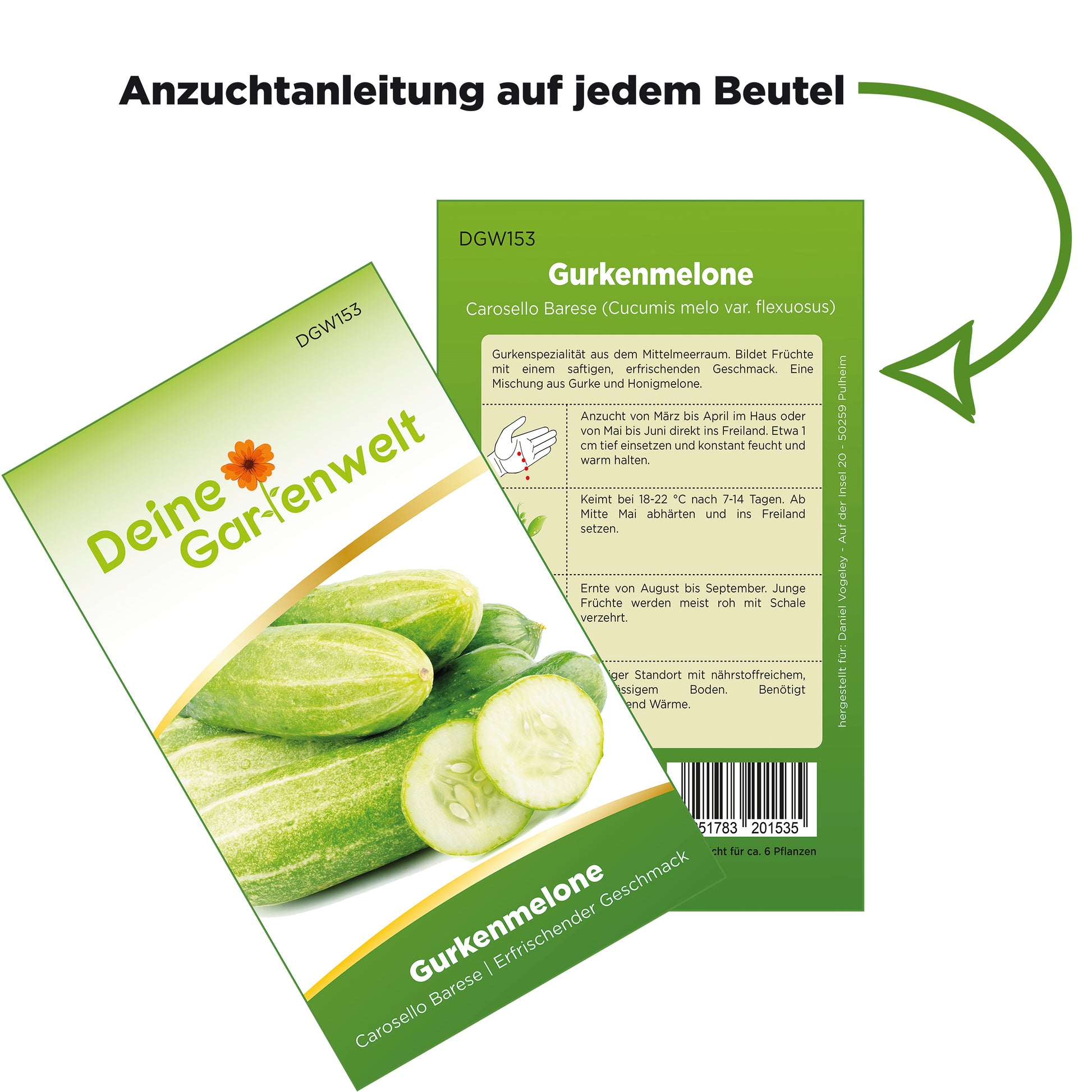 Gurkenspezialität aus dem Mittelmeerraum. Bildet Früchte mit einem saftigen, erfrischenden Geschmack. Eine Mischung aus Gurke und Honigmelone.