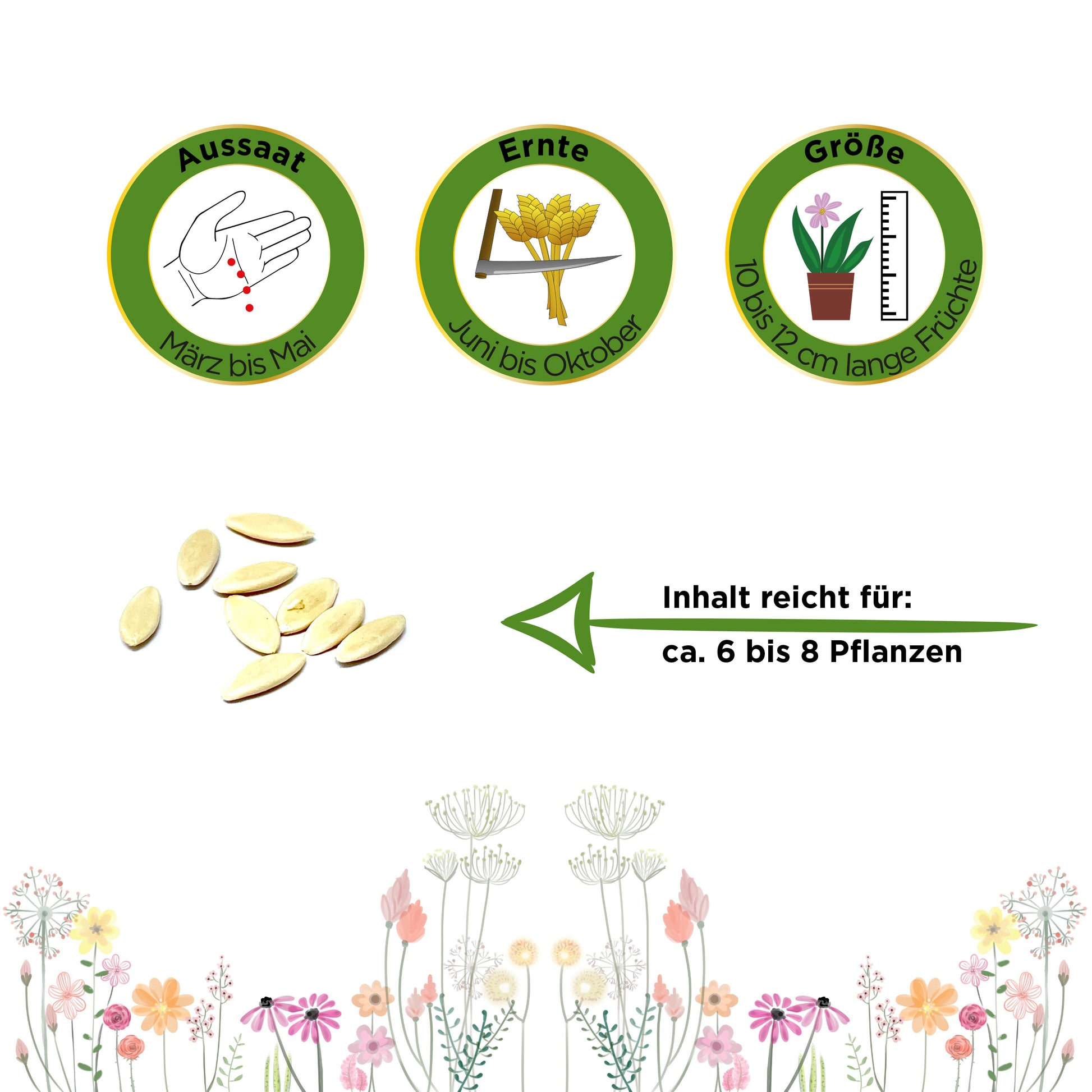 Bildet kleine, 10-12 cm lange Früchte, die sich ideal als Snack für Zwischendurch eignen. Ohne Bitterstoffe, frisch, gesund und kalorienarm. Eignet sich auch für Kübel und Töpfe.
