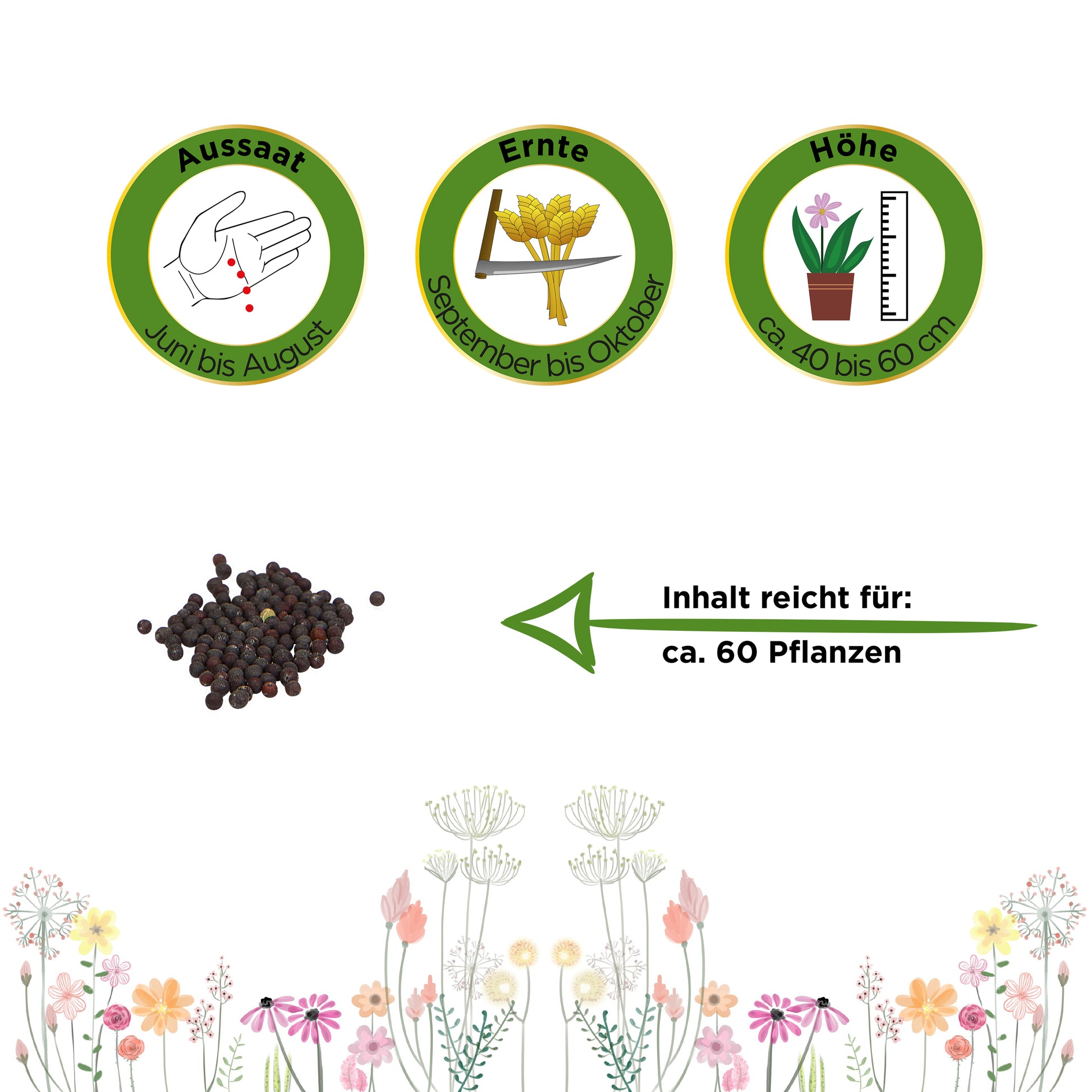 Aussaat: Aussaat von Ende Juni bis August im Freiland. Ca. 0,5-1 cm tief mit einem Abstand von 20 cm.