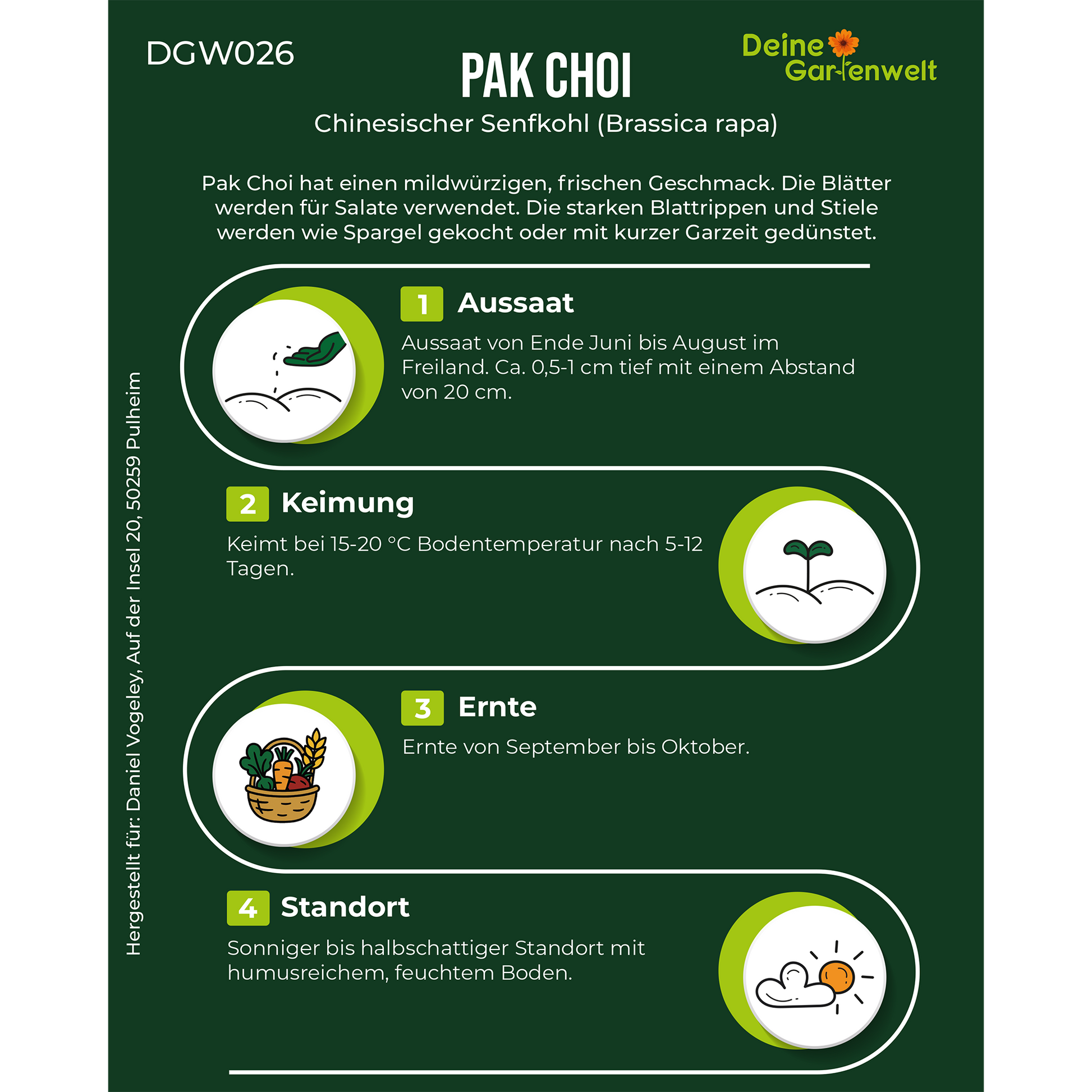 Pak Choi hat einen mildwürzigen, frischen Geschmack. Die Blätter werden für Salate verwendet. Die starken Blattrippen und Stiele werden wie Spargel gekocht oder mit kurzer Garzeit gedünstet.
