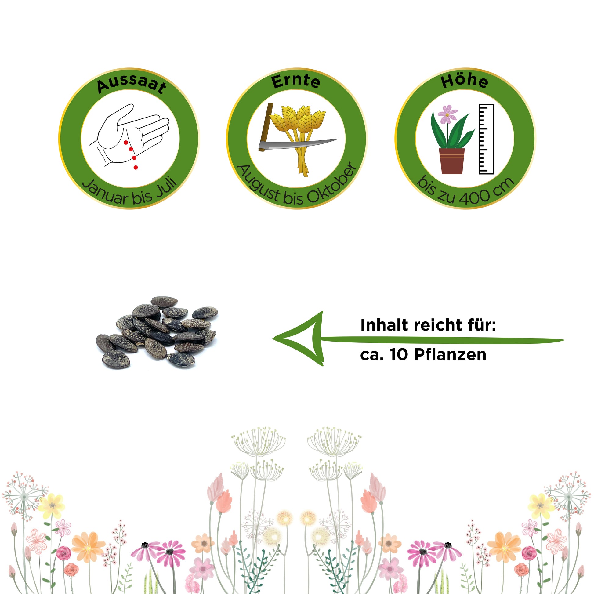 Aussaat: Aussaat von Januar bis Juli im Haus. Samen zwei Tage vor der Aussaat vorquellen lassen. 0,5 cm tief in Aussaaterde setzen und vor Austrocknung schützen.