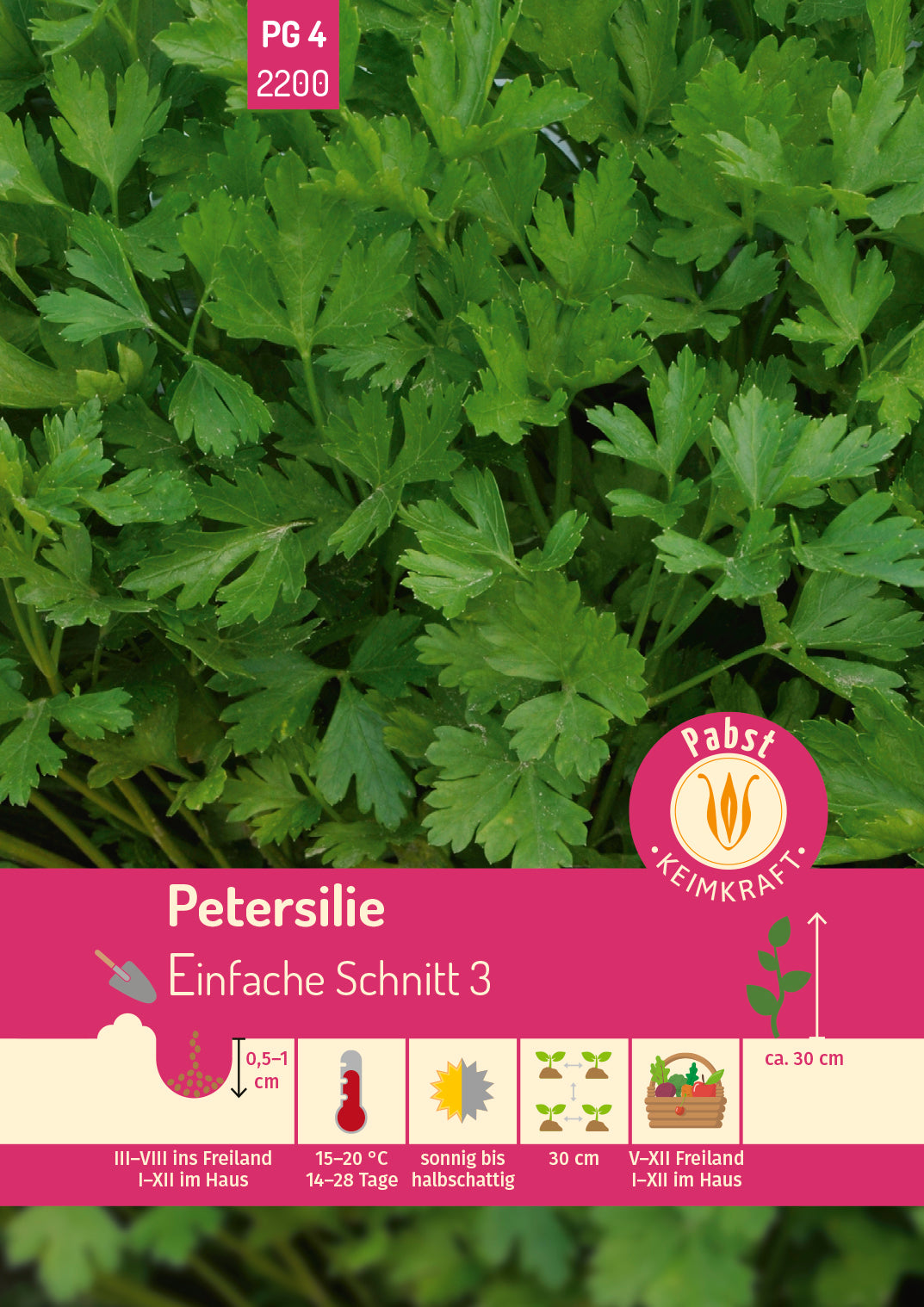 Vielseitig verwendbares, zweijähriges, sehr aromatisches, glattblättriges Würz- und Heilkraut für Garten, Balkon und Fensterbank. Petersilie darf in der Küche nicht fehlen und kann durch Einfrieren und Trocknen gut konserviert werden.