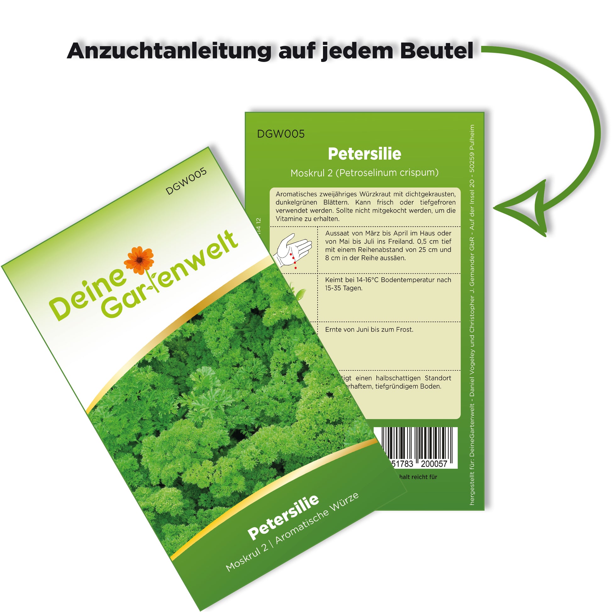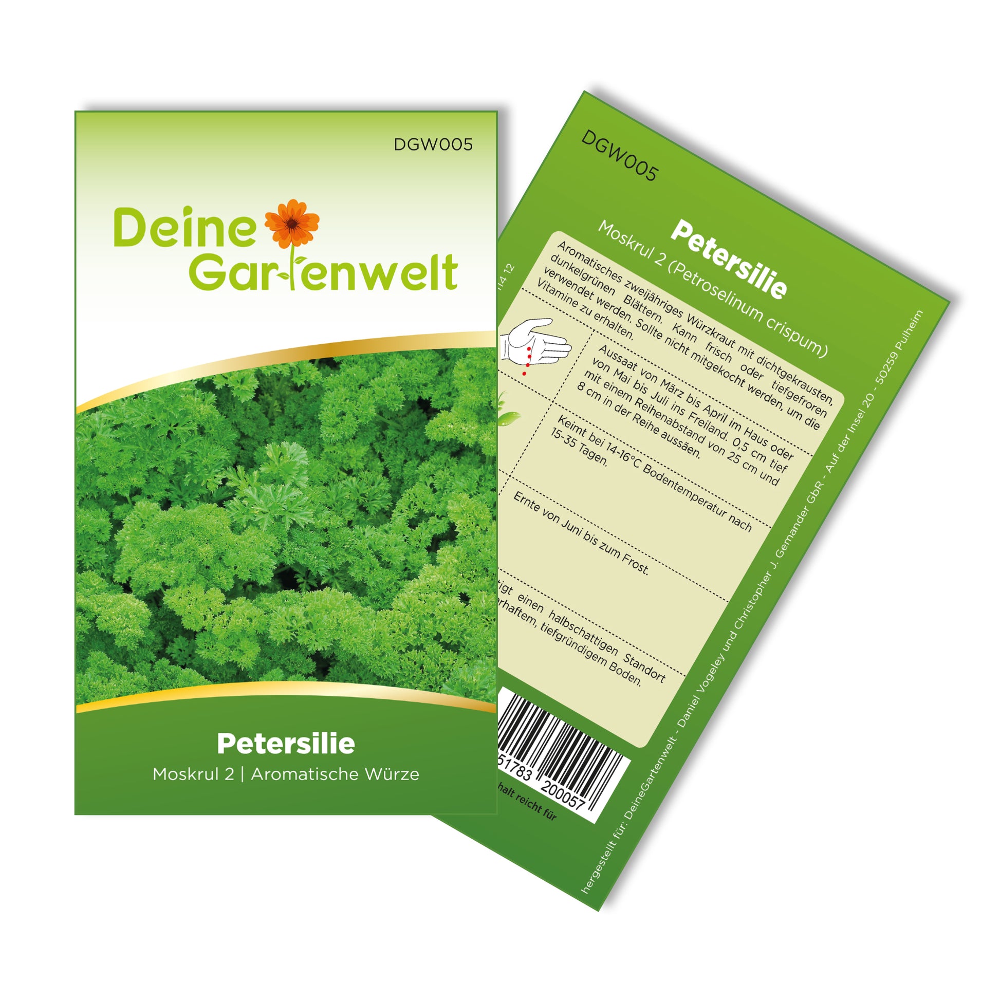 Aromatisches zweijähriges Würzkraut mit dichtgekrausten, dunkelgrünen Blättern. Kann frisch oder tiefgefroren verwendet werden. Sollte nicht mitgekocht werden, um die Vitamine zu erhalten.