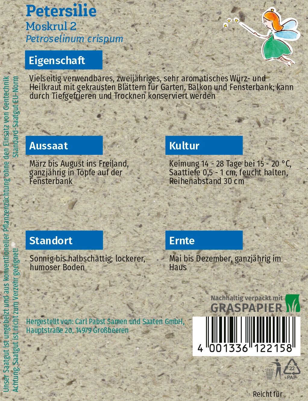 Vielseitig verwendbares, zweijähriges, sehr aromatisches Würz- und Heilkraut mit gekrausten Blättern für Garten, Balkon und Fensterbank. Petersilie darf in der Küche nicht fehlen und kann durch Einfrieren und Trocknen gut konserviert werden.