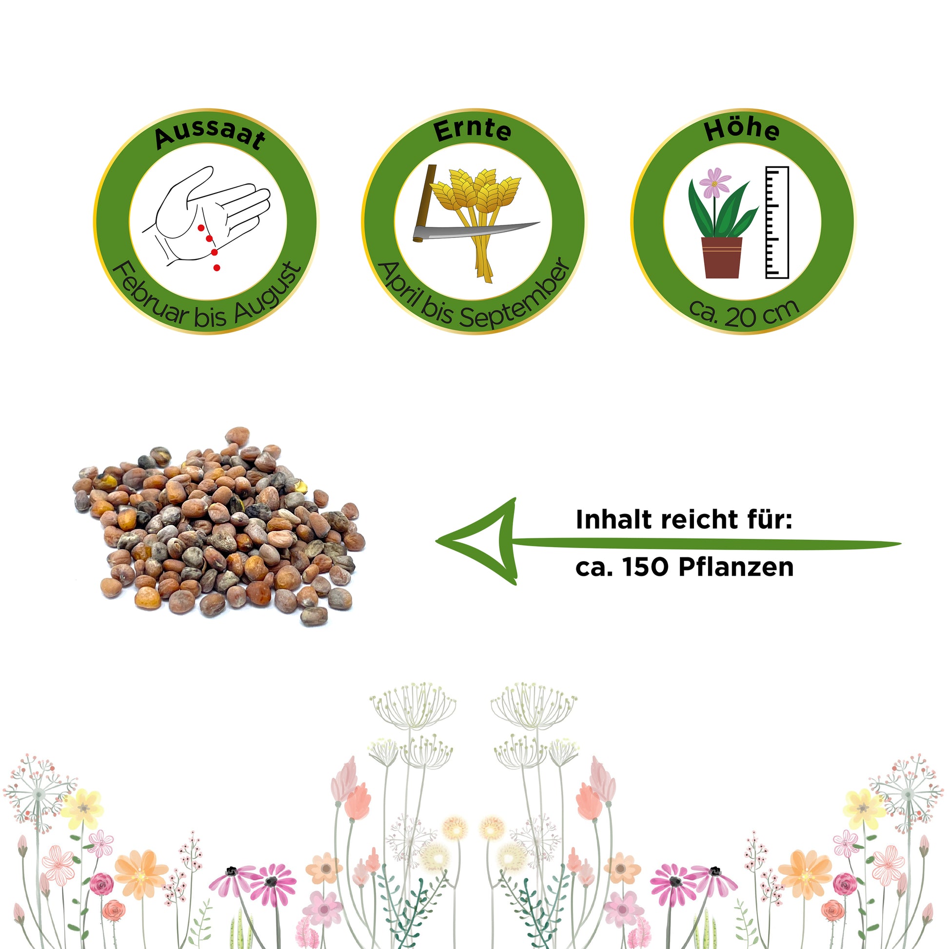 Ernte: Ernte von Ende April bis September, je nach Aussaat. Ideal zum Frischverzehr oder für Salate.