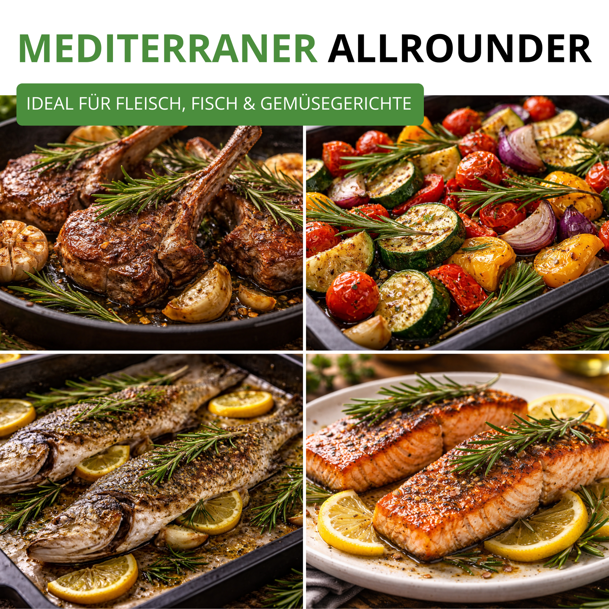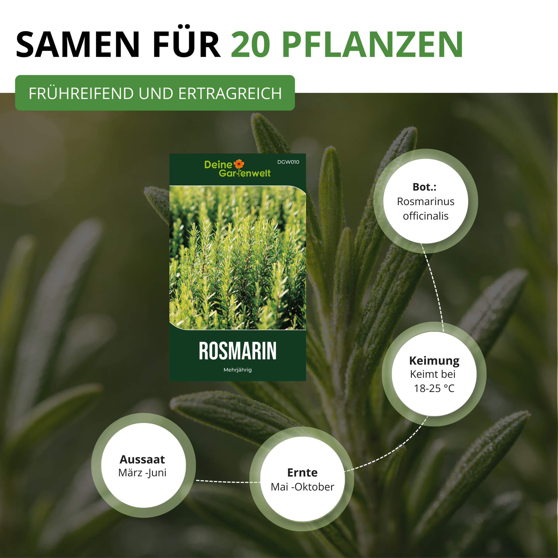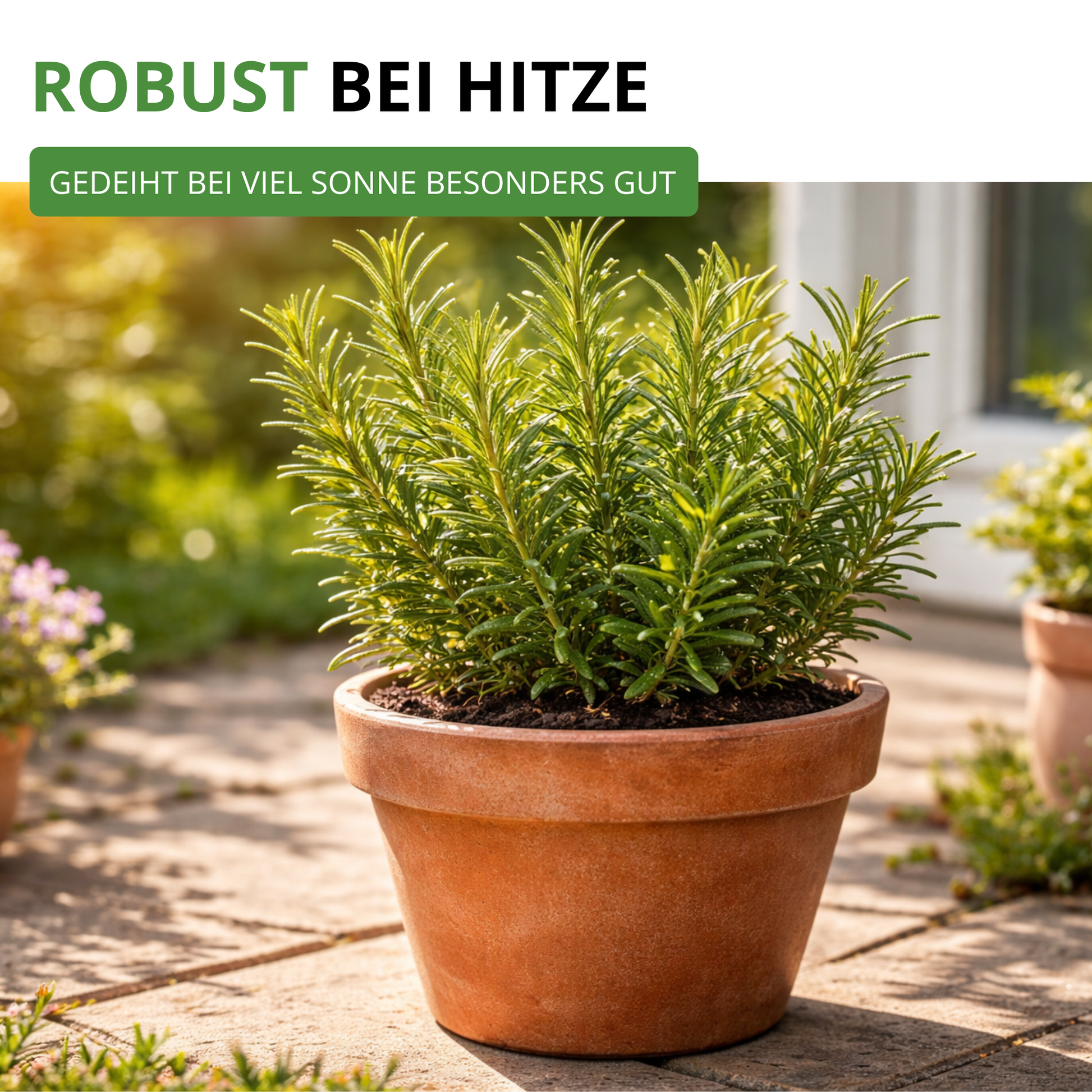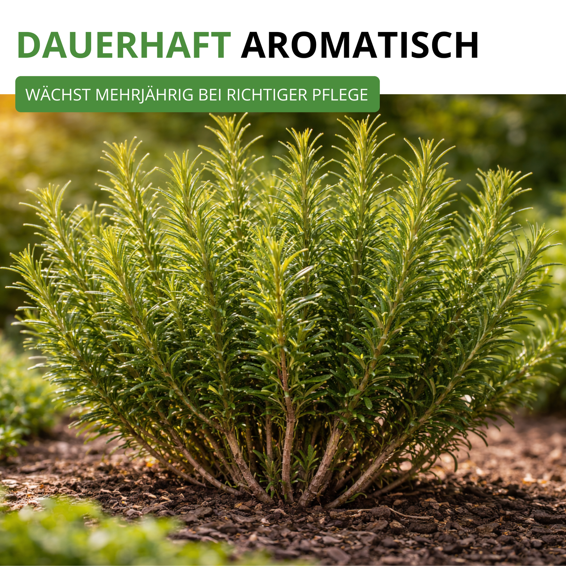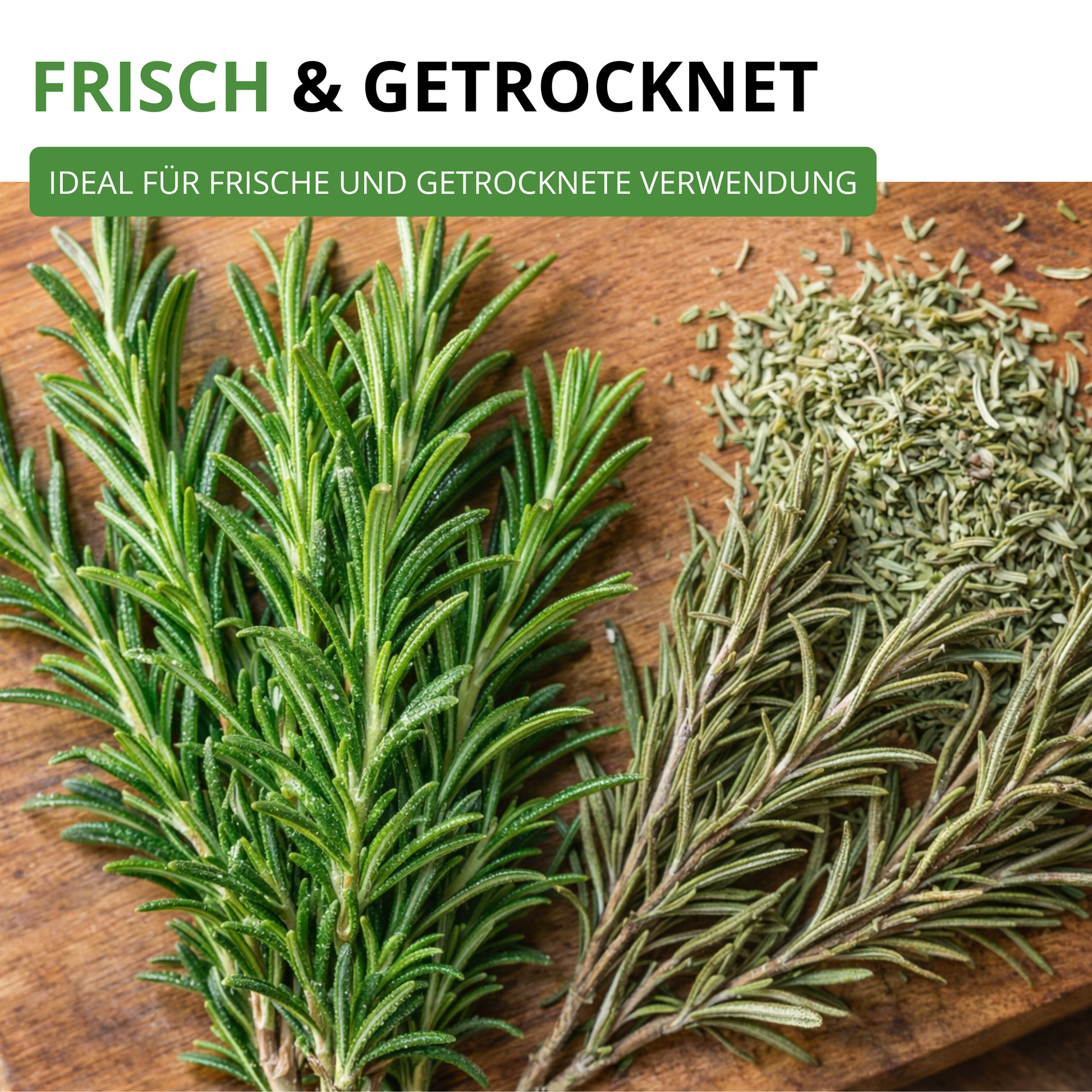 Mehrjähriger Rosmarin mit nadelförmigen Blättern und sehr aromatischem Eigengeschmack. Verwendung frisch oder getrocknet, überwiegend in der mediterranen Küche.