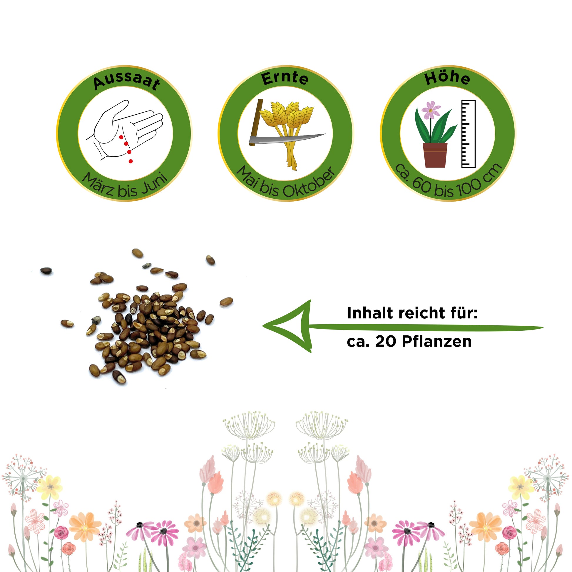 Keimung: Keimt bei 18-25°C Bodentemperatur nach 20-35 Tagen. Keimt ungleichmäßig. Lichtkeimer!