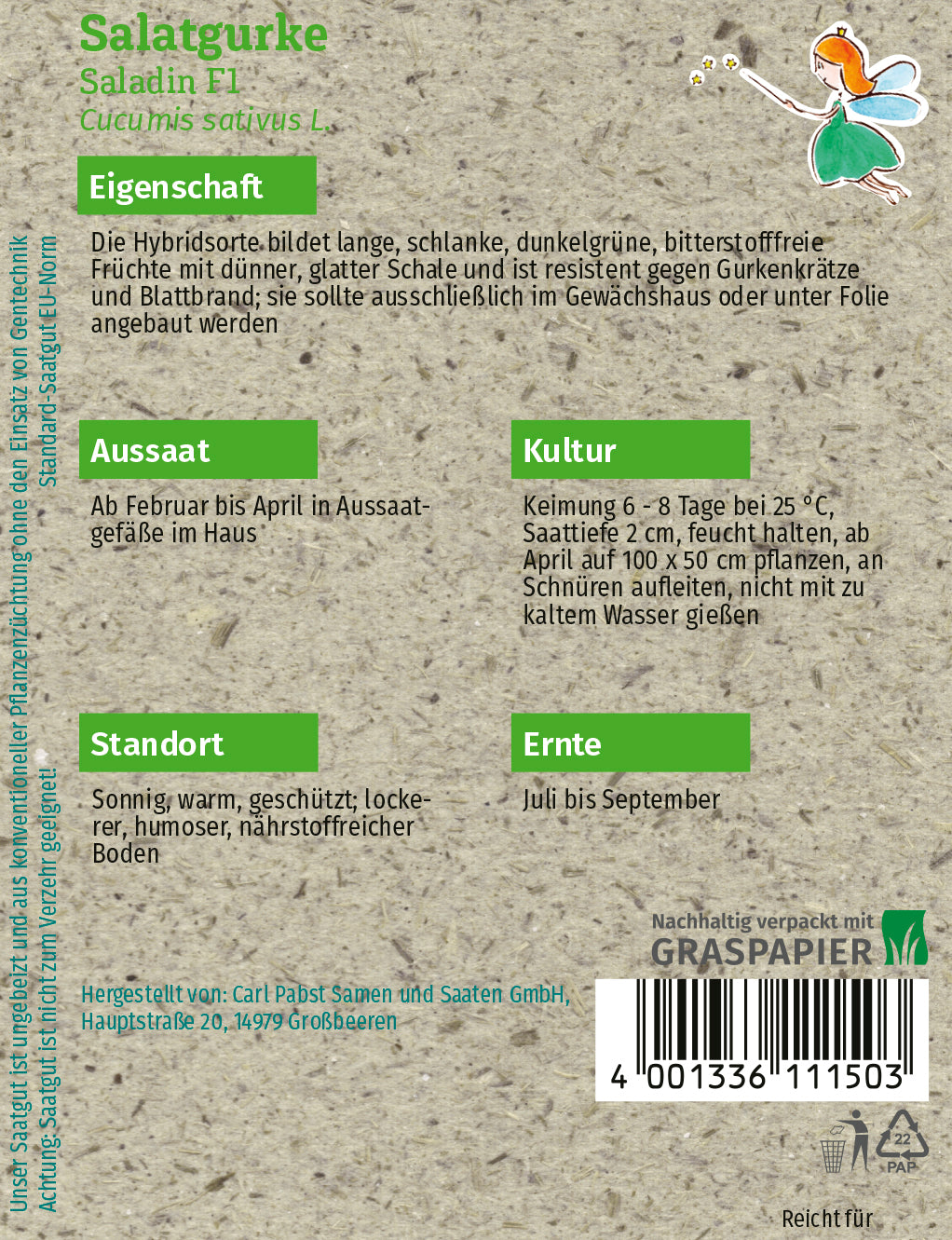 Diese Hybridsorte bildet lange, schlanke, dunkelgrüne, bitterstofffreie Früchte mit dünner, glatter Schale und ist resistent gegen Gurkenkrätze und Blattbrand. Sie sollte ausschließlich im Gewächshaus oder unter Folie angebaut werden.
