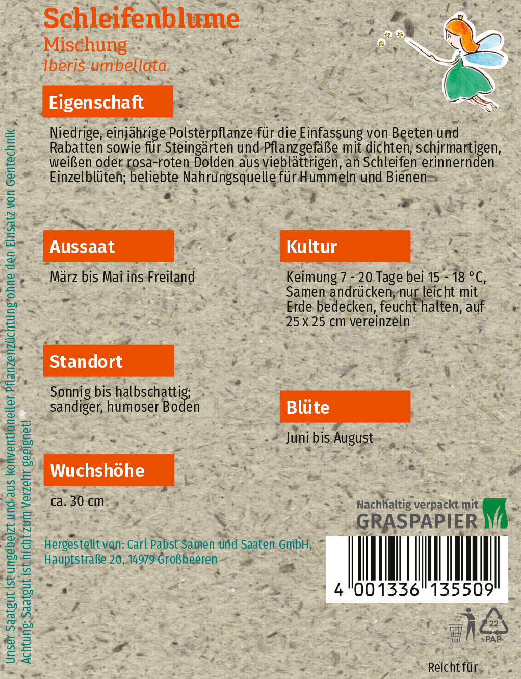 Niedrige, einjährige Polsterpflanze für die Einfassung von Beeten und Rabatten sowie für Steingärten und Pflanzgefäße mit dichten, schirmartigen, weißen oder rosa-roten Dolden aus vieblättrigen, an Schleifen erinnernden Einzelblüten, beliebte Nahrungsquelle Für Hummeln und Bienen.