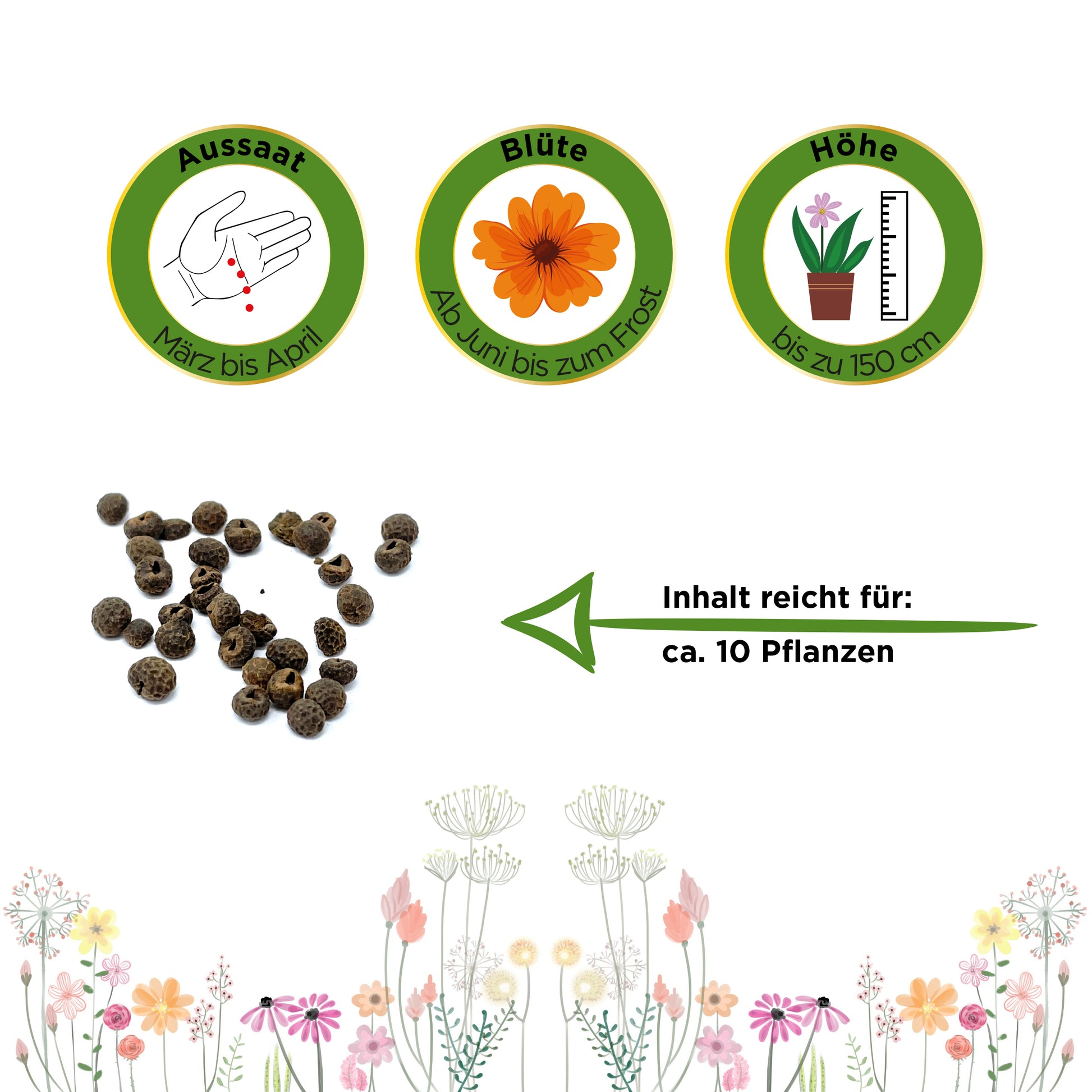 Keimung: Keimt bei 20-30°C Bodentemperatur nach 10-21 Tagen. Ab Mitte Mai frostfrei ins Freiland setzen. Vorher an die Außentemperatur gewöhnen.