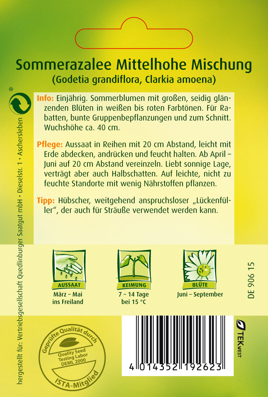 Einjährig. Sommerblumen mit großen, seidig glänzenden Blüten in weißen bis roten Farbtönen. Für Rabatten, bunte Gruppenbepflanzungen und zum Schnitt. Wuchshöhe ca. 40 cm.