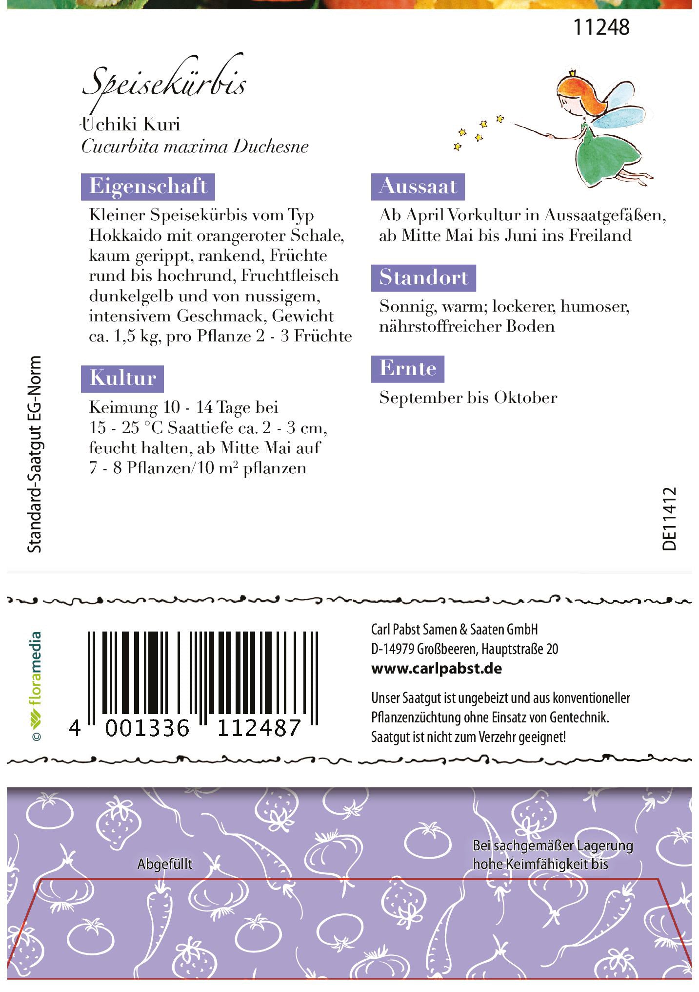 Kleiner, rankender Speisekürbis vom Typ Hokkaido mit orangeroter Schale und dunkelgelbem Fruchtfleisch mit nussigem Geschmack. Ein Fruchtgewicht von ca. 1,5 kg und zwei bis drei gut lagerfähige Früchte pro Pflanze. Hervorragend geeignet für Suppen, Pfannengemüse und Desserts-auch die Schale ist zum Verzehr geeignet.