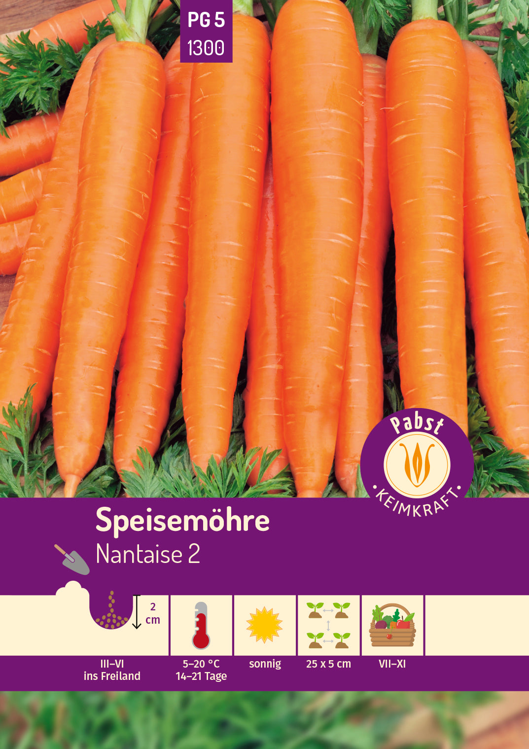 Mittelfrühe Speisemöhre mit zylindrischen, abgestumpften, glattschaligen Rüben und hohem Carotingehalt. Die einjährig angebaute, halblange Sorte lässt sich neben klassischer Verarbeitung als Wurzelgemüse auch gut einfrieren.