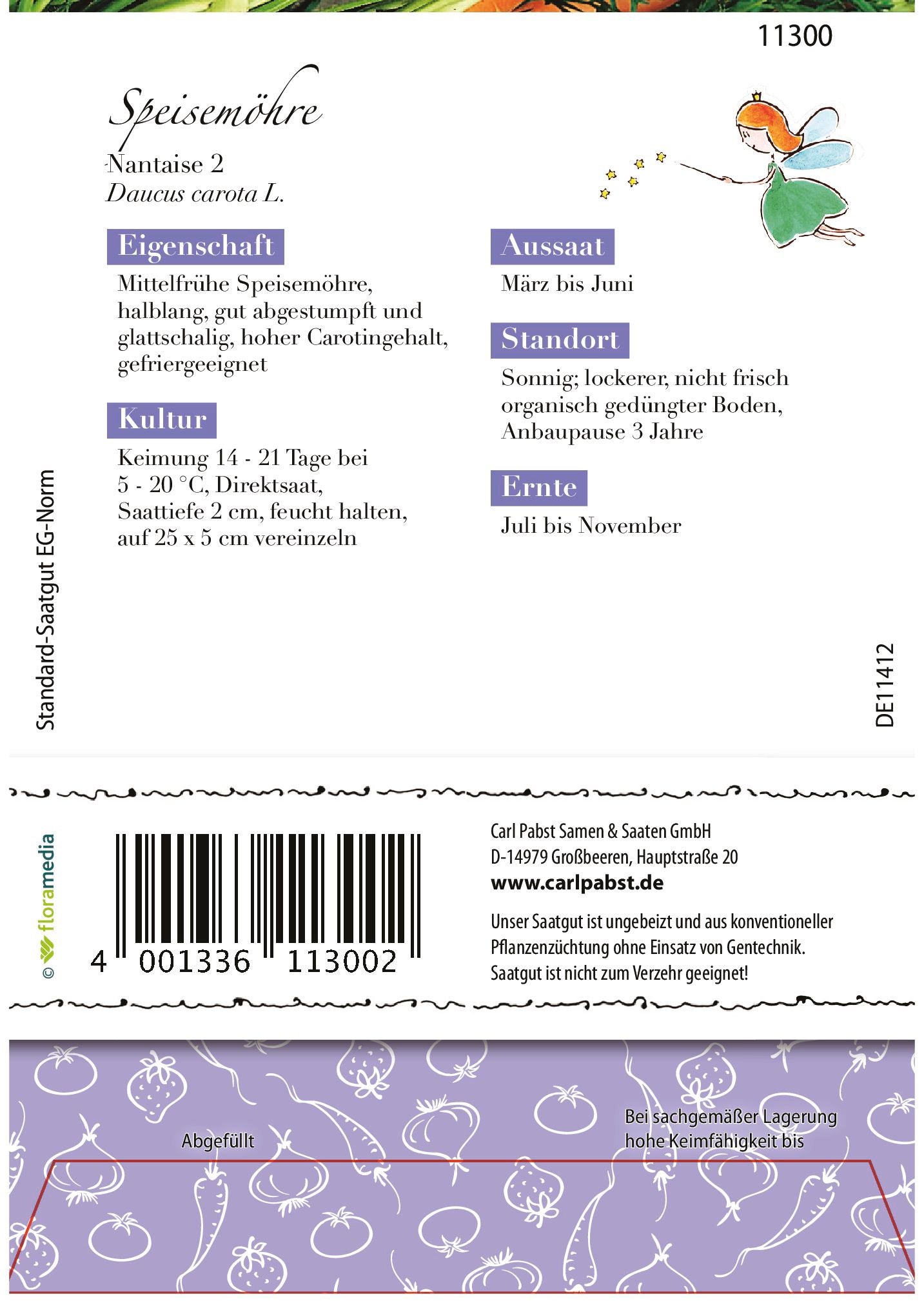 Mittelfrühe Speisemöhre mit zylindrischen, abgestumpften, glattschaligen Rüben und hohem Carotingehalt. Die einjährig angebaute, halblange Sorte lässt sich neben klassischer Verarbeitung als Wurzelgemüse auch gut einfrieren.