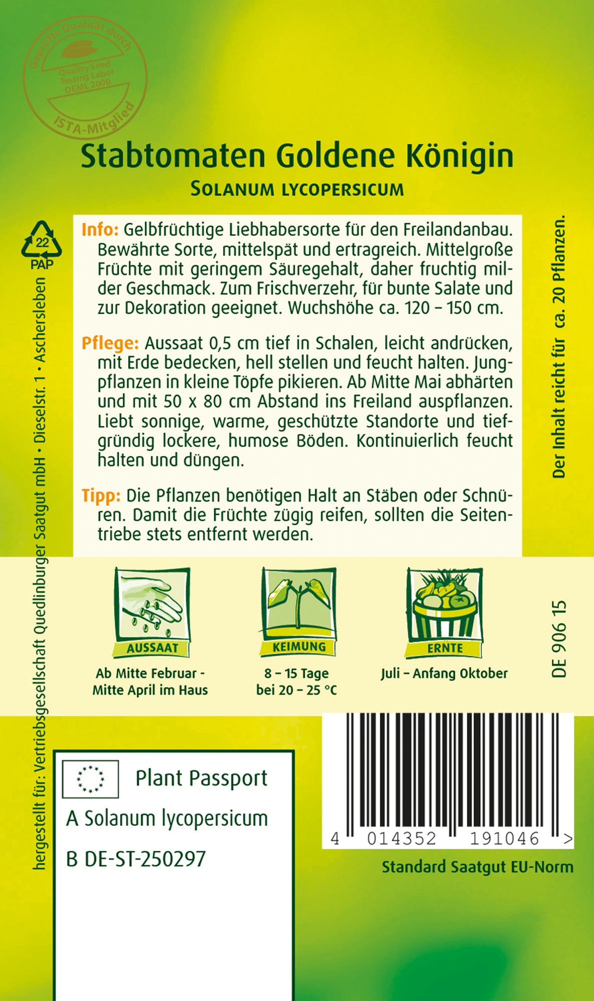 Gärtnertipp: Die Pflanzen benötigen Halt an Stäben oder Schnüren. Damit die Früchte zügig reifen, sollten die Seitentriebe stets entfernt werden.