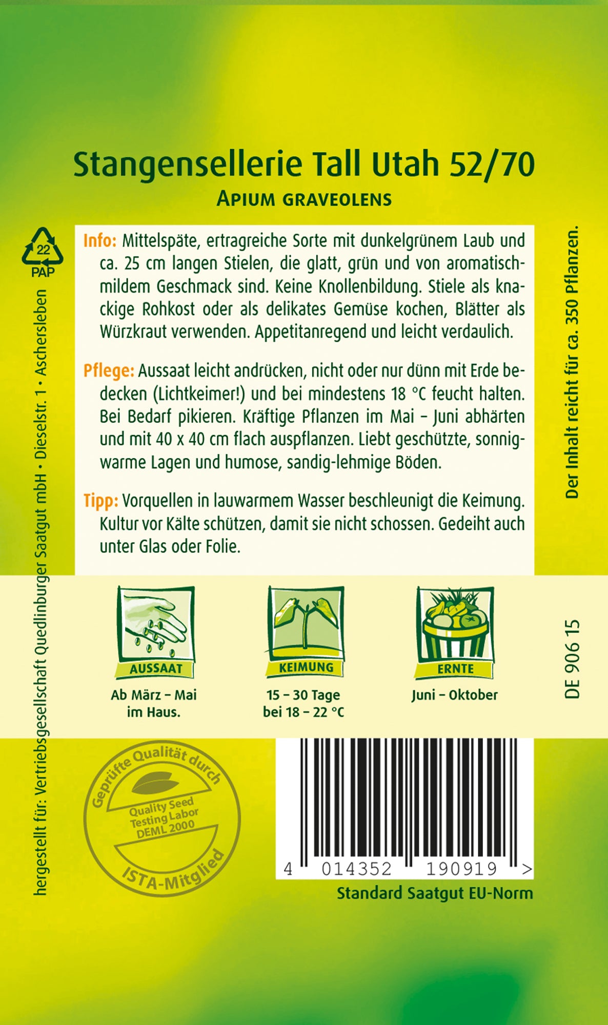 Gärtnertipp: Vorquellen in lauwarmem Wasser beschleunigt die Keimung. Kultur vor Kälte schützen, damit sie nicht schossen. Gedeiht auch unter Glas oder Folie.