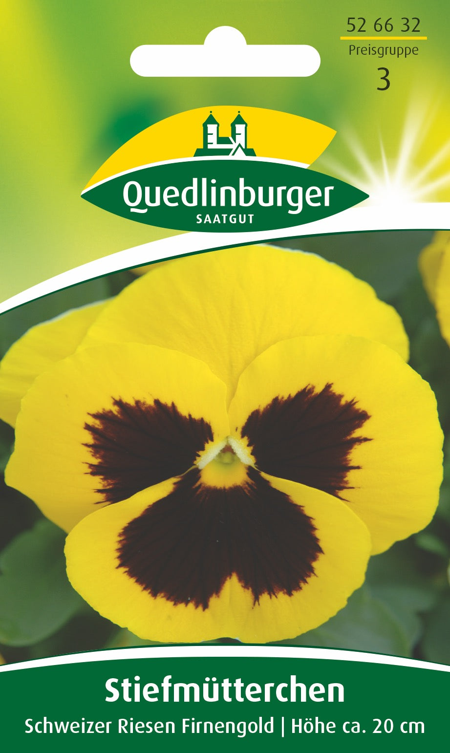 Zweijährig. Frühlingsblüher mit zahlreichen, riesigen Blüten, gelb mit Auge und gedrungenem Wuchs. Für Flächen-, Gruppen- und Grabbepflanzungen, Einfassungen, Schalen und Balkonkästen. Wuchshöhe ca. 20 cm.