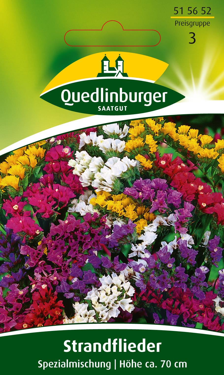 Einjährig. Auch Meerlavendel genannt. Verzweigte, geflügelte Stiele mit vielen kleinen Blüten. Schnittblume in weiß, rosa, gelb, orange, blau und violett, unentbehrlich für Trockensträuße. Wuchshöhe ca. 70 cm.