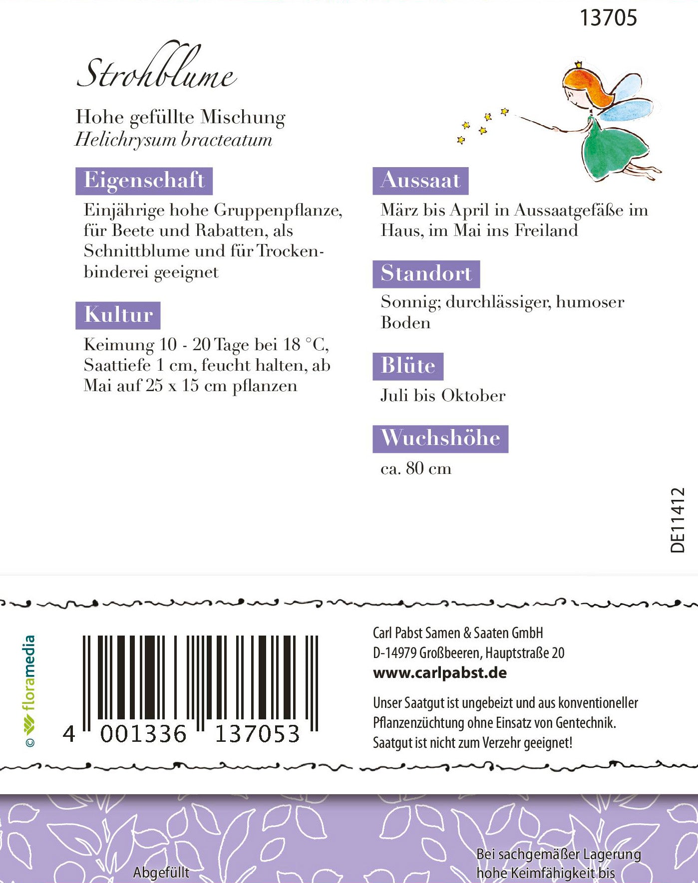 Bunte Mischung einjähriger, gefüllt blühender Gruppenpflanzen für Sommerblumenbeete mit strohartigen Blütenblättern in leuchtenden Farben, besonders beliebt als Schnittblumen und für Trockensträuße, zum Trocknen mit halbgeöffneten Blüten an einen schattigen Ort hängen.