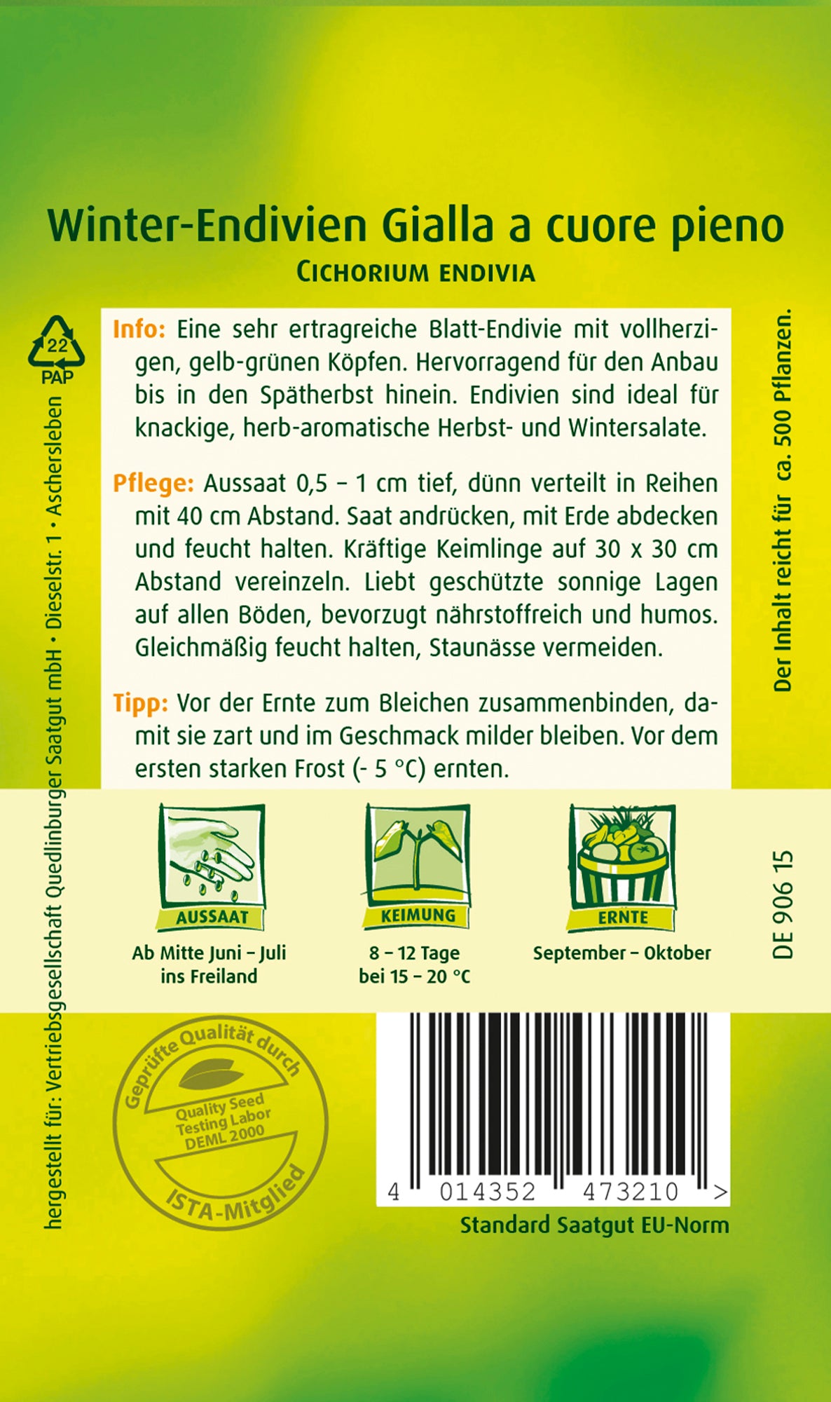 Gärtnertipp: Vor der Ernte zum Bleichen zusammenbinden, damit sie zart und im Geschmack milder bleiben. Vor dem ersten starken Frost (- 5 °C) ernten.