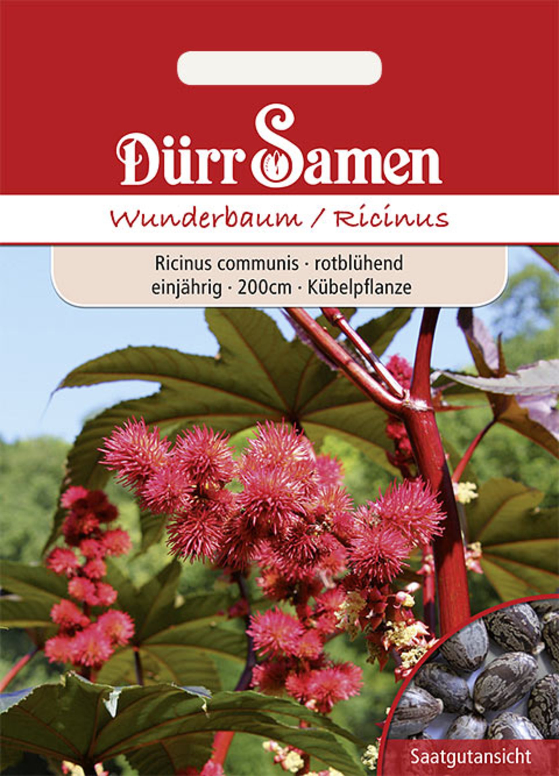 Info: Dieser rot blühende Wunderbaum eignet sich bestens als Solitär- oder Kübelpflanze. Sehr dekorativ.